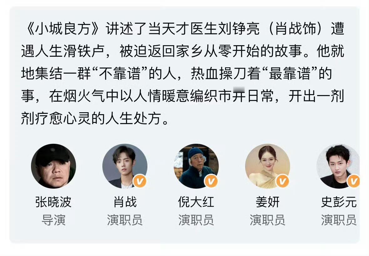 真的很喜欢《小城良方》阵容,实力派超人气一线演员肖战领衔主演,集结一群角色适配度很高的老戏骨小戏骨,剧情设定也很新颖,非常非常期待!!