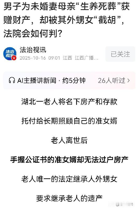 湖北,70多岁的王某卫和未婚妻李某梦没领证,但一起生活多年,2021年李某梦去世,留下90多岁的母亲顾奶奶。王某卫没有离开,一直照顾着顾奶奶,顾奶奶为表感谢,把两套房产和355万存款及利息赠给王某卫,还签了赠与合同,王某卫履行义务后想过户,却因为合同问题折腾大半年没过户成功,这时,一个自称是顾奶奶外甥女的张某芳跳出来要争遗产。 王某卫今年七十多了,和李某梦一起生活了十几年,一直没领结婚证。2021年,李某梦查出癌 症 晚 期,三个月后人就没了。 李某梦走后,她92岁的母亲顾奶奶成了大问题,顾奶奶就这一个闺女,现在闺女走了,自己又瘫在床上动不了,连吃饭都得人喂。 王某卫没像有些人那样拍拍屁股走人,反而每天早中晚三顿饭准时送,邻居都夸他实在,他却说:我和李某梦这么多年,她妈就是我妈。 这一切,顾奶奶看在眼里,两个月后,她让王某卫推着轮椅去公证处,当着公证员的面签了份赠与合同。 合同上写着:两套房子,355万存款,还有这些年攒的利息,全给王某卫,条件是王某卫得继续照顾她,给她养老送终。 从那天起,王某卫更上心了,顾奶奶爱吃软和的,他就每天熬小米粥,老人爱听戏,他专门买了收音机,2023年2月,顾奶奶病危住进ICU,王某卫以女婿身份在手术同意书上签了字。 老人走的那天晚上,王某卫守在床边握着她的手说:你放心吧妈,我会把后事办得体体面面。 殡仪馆里,王某卫花了三万多选了个最好的告别厅,灵堂布置得特别温馨,照片是顾奶奶80大寿时拍的,笑得特别慈祥。 等王某卫拿着公证书去办房产过户时,负责房产过户的人员说赠与合同得双方到场,现在顾奶奶走了,这手续办不了。 就在他不知如何处理时,一个自称顾奶奶外甥女的人找上门来,这个女人就是张某芳,40多岁,穿着时髦,一进门就说要分遗产。 王某卫愣了:你是谁啊?我怎么没听说过? 张某芳掏出张泛黄的照片:这是我姨和我妈年轻时的合影,你看,这能作假吗? 原来张某芳她妈和顾奶奶是亲姐妹,但30年前就搬去外地了,这些年几乎没联系过,现在听说有遗产,立马就跑来了。 张某芳把王某卫告上法庭,说赠与合同无效,要求重新分配遗产。 法 院查了半天,发现张某芳确实有代位继承权,但她这些年根本没尽过赡养义务。 那么,该如何以法律的角度看这件事呢? 1,赠与合同,到底有没有效呢? 张某芳一口咬定合同无效,理由是王某卫和自己的表姐李某梦没领证,不算法定继承人,这说法听着像那么回事,法律上却站不住脚。 《民法典》第657条有规定,赠与合同是赠与人将自己的财产无偿给予受赠人,受赠人表示接受的合同。 顾奶奶和王某卫签的合同里,白纸黑字写着两套房加355万存款赠给王某卫,条件是继续赡养。 公证处盖了章,双方都签了字,这合同从形式到内容都合法。 关键点在于,赠与合同不需要受赠人有继承权,只要赠与人自愿、财产合法就行。 2,张某芳的代位继承权,是否真实合法呢? 民法典第1128条明确规定,被继承人的兄弟姐妹先于被继承人死亡的,由被继承人的兄弟姐妹的子女代位继承。 张某芳她妈和顾奶奶是亲姐妹,她妈要是先走了,张某芳确实能代位继承。 但法律也明文规定,有扶养能力和有扶养条件的继承人,不尽扶养义务的,分配遗产时应当不分或者少分。 张某芳30年没联系过顾奶奶,老人瘫痪在床两年,她连面都没露过,更别说端茶倒水了。 审理时,也查了她的银 行 流水,这期间没有一笔给顾奶奶的转账记录。 到是王某卫,每天送饭、擦身、买药,老人住院时在手术单上签字,殡仪馆花了三万多办后事。 两个人一对比,谁尽了义务一目了然。 最后的判决结果:赠与合同有效,王某卫该得的照样得,但张某芳作为法定继承人,得配合办过户手续,诉讼费也得她出。 这个判决依据的是民法典第1130条,对被继承人尽了主要扶养义务的继承人,可以多分遗产;有扶养能力却不尽义务的,不分。 张某芳空有代位继承资格,没尽半点义务,自然分不到钱。 这事最扎心的在于,法律能分清钱该归谁,却算不清情分值多少。王某卫要是图钱,早就在李某梦去世时就走人,何必伺候瘫痪老人两年? 张某芳要是念亲情,30年前就该常联系,而不是等老人走了才跳出来争遗产。 3,有人可能会问,要是顾奶奶没签赠与合同,王某卫还能分到遗产吗? 按法律,他这种同居伴侣不算配偶,是没有法定继承权。 但民法典第1131条规定,对继承人以外的依靠被继承人扶养的人,或者对被继承人扶养较多的人,可以分给适当遗产。 王某卫要是能证明自己尽了主要赡养义务,也能分到点,但肯定没赠与合同来得干脆。 说到底,法律是底线,情分才是人与人之间的纽带。 王某卫要的不是钱,是这份认可,张某芳争的不是遗产,是那份不该有的贪心。 有人说王某卫傻,白照顾老人好几年,也有人说张某芳太精明,见钱眼开,要是你,你会怎么做呢?