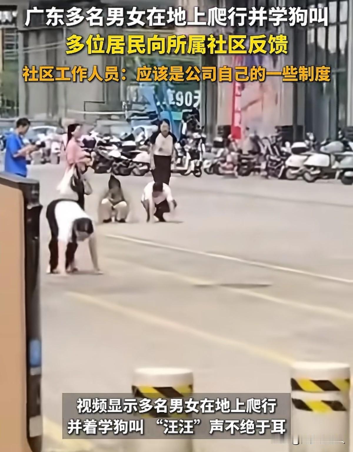 这家公司胆真大,公开把员工当牛马了,让他们上街爬行学狗叫 十年多前小到一些沐足店门口,大到一些公司楼下,都会看到一群员工整齐的站着,在那唱“感恩的心”这首歌,或者是在做操。 这是因为当时一些私企流行给自己企业设置一个企业文化,像是“狼性文化”等,让员工集体唱歌、做操只是属于温和的一部分。 私企为了提升营业额,也会给员工设置各种各样的处罚! 比如说在某一段时间,谁没有在规定时间完成营业额,就要接受处罚,要是整个团队都没有完成,那就所有人都要受到处罚。 处罚基本上是带有侮辱性的,像是让男员工穿着裙子,去人多的地方跑一圈;也有让员工两个人一组,用力互扇耳光的;学狗爬等等。 那时候自媒体时代,还没到来,在公共场所被所罚的员工行为,也就在小范围内流传,普通大众是不会知道会有这么奇葩的公司规定。 至于员工为什么愿意接受那些带有侮辱性的处罚,主要还是不想离职,舍不得那份工作,因此他们哪怕知道公司的处罚是违法的,只能默认。 没有人发声,没有媒体报道,就没有在社会上制成很大的舆论风波。 然而,现在是个人自媒体时代,人人都可以拿着手机拍视频上传到网上,还有公司胆大包天,让员工去户外接受处罚爬行学狗叫,必然会上热搜,引发全网热议。 广东这家公司的负责人,在2025年还用那套老旧的管理手段,实在是让人无语,这样的公司注定走不远。