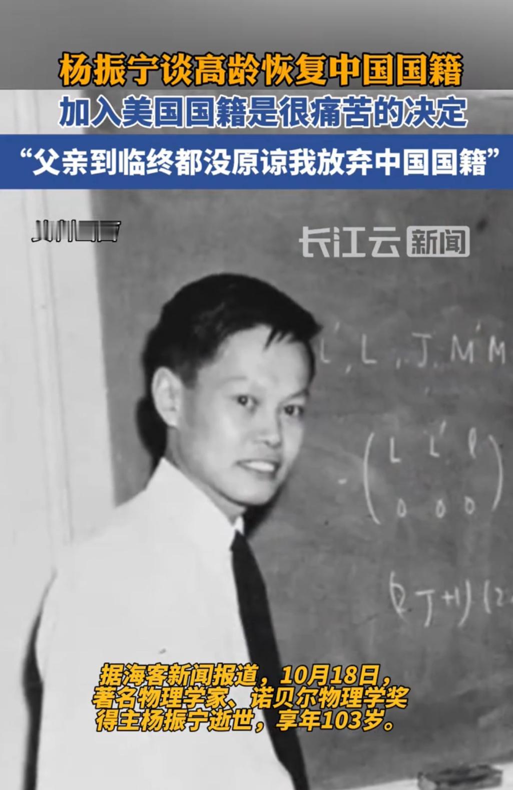 杨振宁先生是2004年回国才回国也是那时候恢复了国籍。 很多网友认为他回来晚了,更加怀念钱学森,钱三强,于敏,郭永怀,邓稼先科学家,在新中国一穷二白,百业待兴,亟需科技人才的时候回来,再最近几年还人说杨没有抛弃美国的丰厚经济。 其实这都太片面了,杨更多是科学泰斗。 在那个年代美国籍的身份更加容易获得最尖端的科学理论和科学仪器。 在现在divided的世界。 我们要从更高的,人类的角度看待杨振宁先生的贡献。