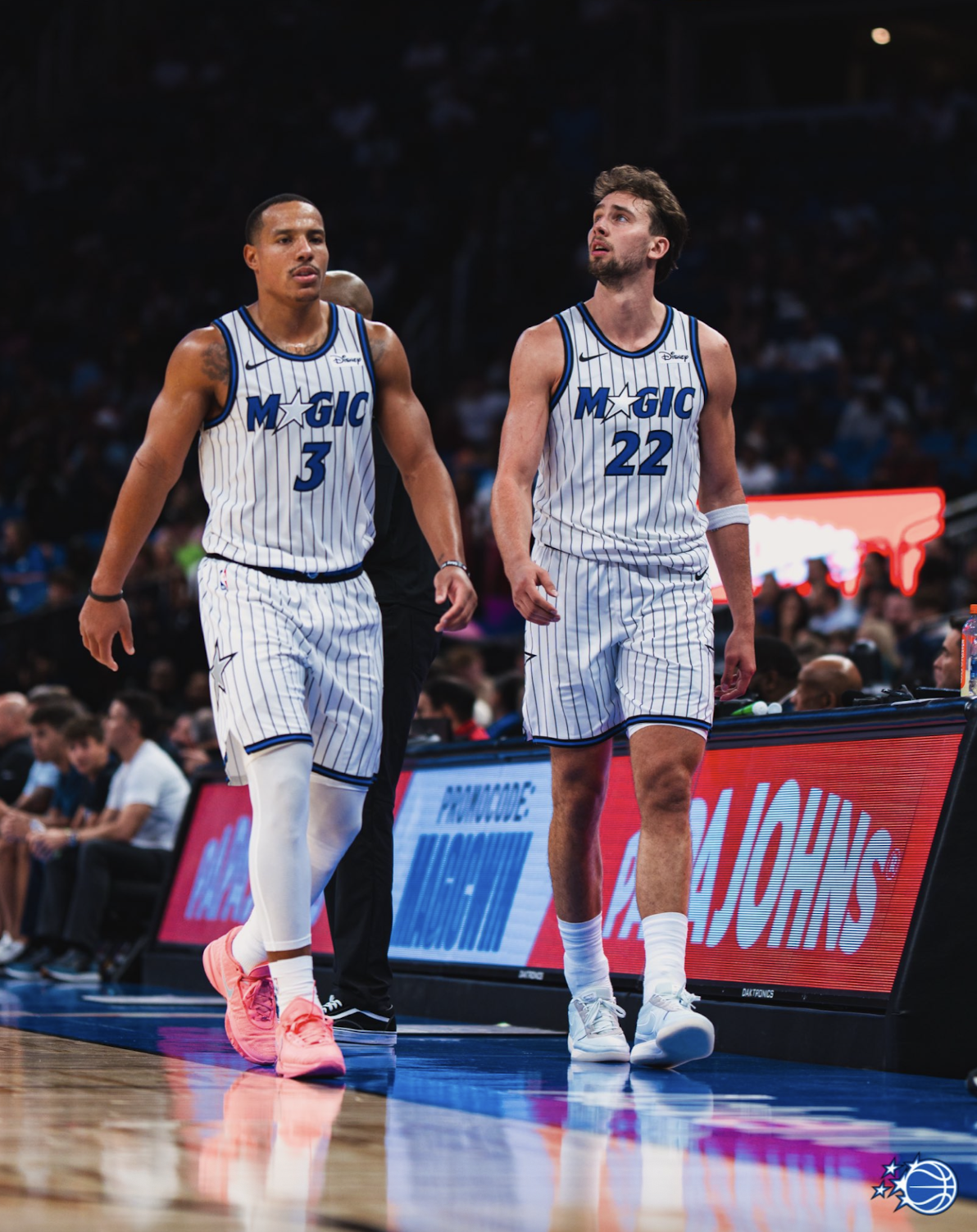 虎扑10月18日讯魔术官方更新X,晒出一张魔术球员贝恩与瓦格纳的赛场照与球迷分享。