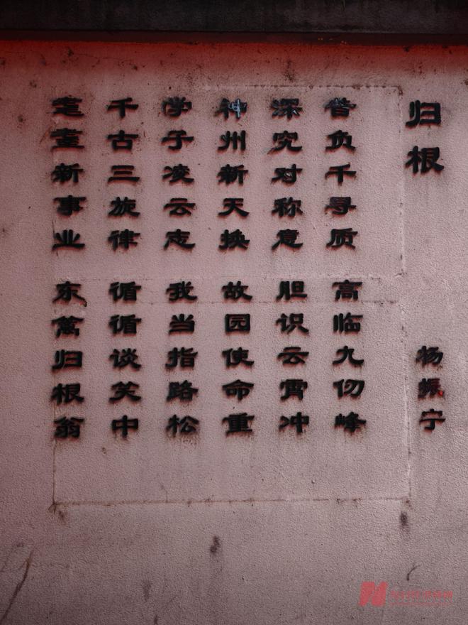 如今,四古巷的墙上,依旧镌刻着杨振宁的诗——《归根》,其中写到:“神州新天换,故园使命重。学子凌云志,我当指路松。千古三旋律,循循谈笑中。”