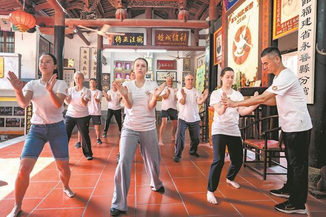 连日来,来自德国的11名永春白鹤拳弟子,不远万里,到福建省泉州市永春县五里街镇翁公祠武术馆溯源寻根,习练永春白鹤拳。