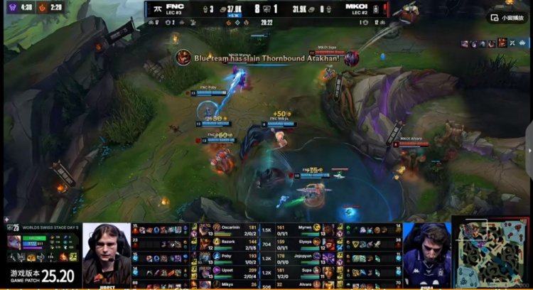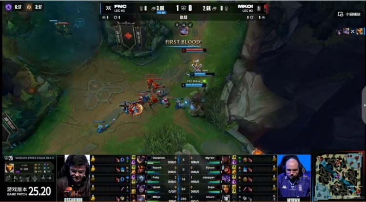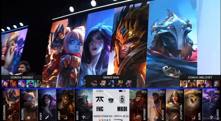 直播吧10月19日讯2025年英雄联盟世界赛来到小组赛第五日,今天是0-2组的比赛,第一场将是LEC赛区的内战,二三号种子FNC和MKOI谁输谁出局!