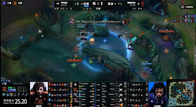 [25:20]FNC抱团拿下大龙,Razork皇子EQ留人被奎桑提带回高地下,但是自己死前框大配合Oscarinin兰博大招直接秒掉了MKOI下路组!