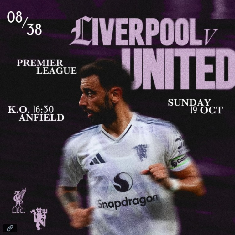 赛前,曼联官方晒出比赛海报,为本场比赛预热。B费单人出镜,海报上方为对阵双方,中部为比赛类型、开球时间以及比赛场地,左下角为两队队徽。