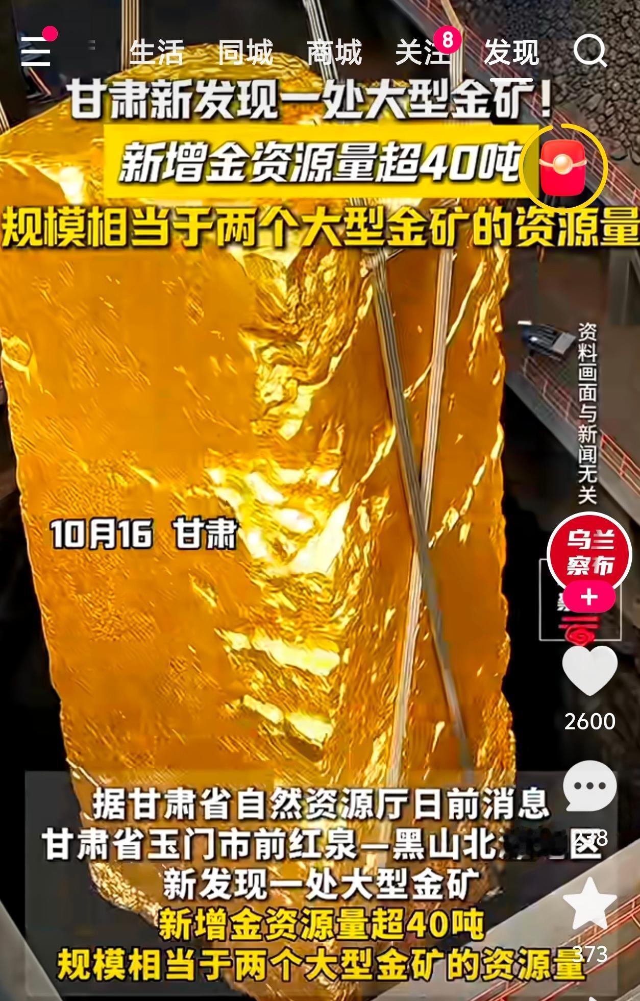 家人们, 真的太惊讶了, 我的家乡甘肃挖出40吨黄金! 甘肃玉门新发现40吨金矿, 相当于两个大型金矿的量, 光价值就超200亿, 这消息也太振奋了! 要知道这矿可不是瞎挖到的,从2017年部署调查, 花了7600多万, 钻了3.5万多米才找到。 更重要的是, 它给同类区域找矿提供了新思路,对本来就是黄金储量第二的甘肃来说, 等于打开了更多可能。 有人问金价会不会跌? 其实40吨放在全球储量里不算多,短期影响不大。 但对当地不一样, 尤其玉门曾因石油枯竭流失人口,这矿说不定能带来就业, 让家门口有活干。 这事儿算不算“藏富于国”的实在体现? 你们觉得开发时最该注意啥? 来聊聊~ 我爱我的家乡,有了这笔财富,愿我的家乡越来越美好 玉门金矿 自然金矿标本