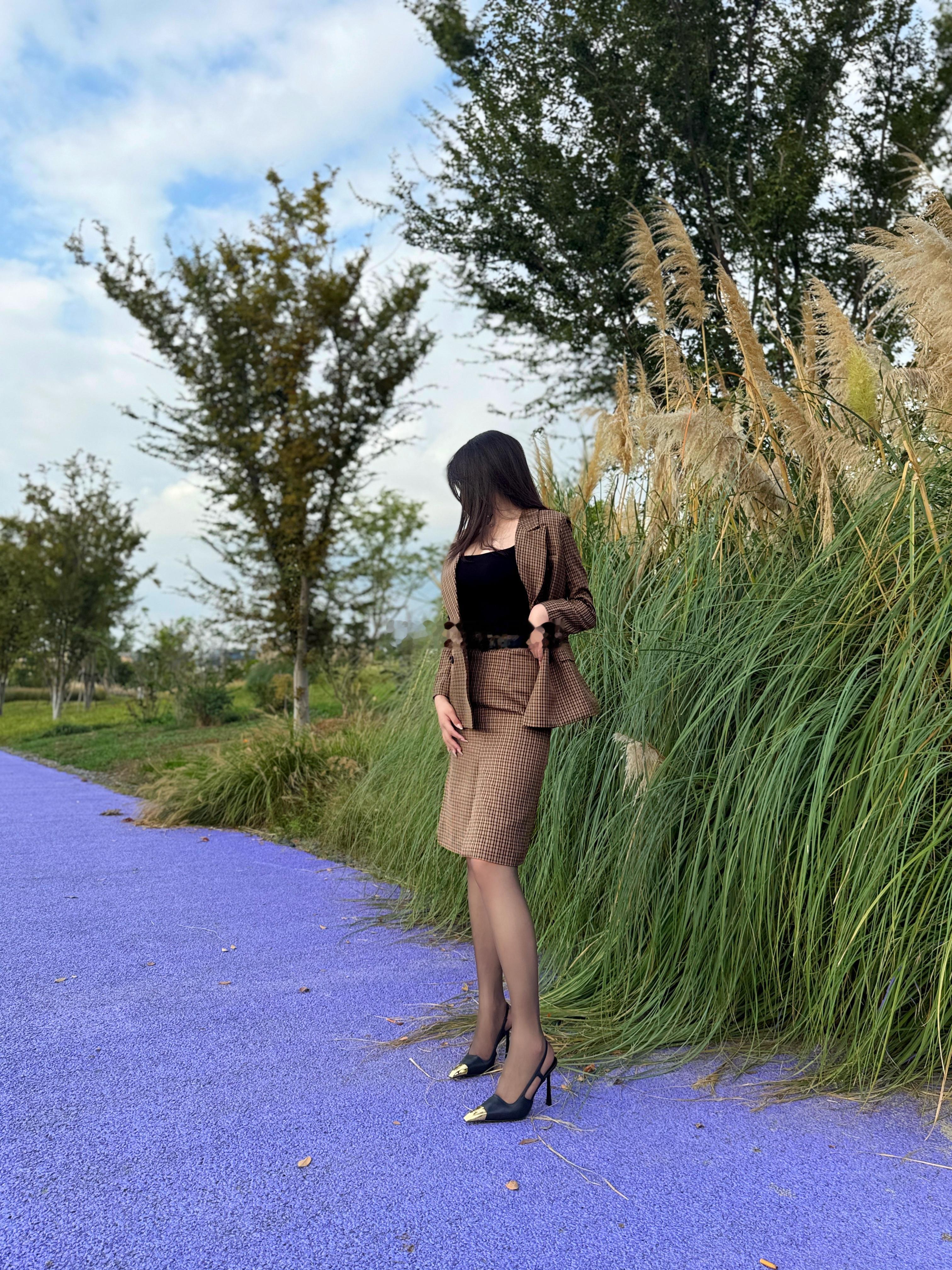 黑上衣配格子裙,简约又好看,日常这么穿挺有气质的,上班和逛街都很合适。