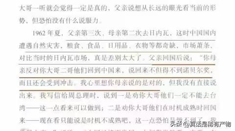 杨振宁以103岁高龄去世,民间和上层的评价貌似是两个极端。而民间对杨振宁的非议最大之处就是他是80多岁才回来的,并且又以82岁高龄迎接了28岁的最好礼物。很多国人认为杨振宁有9为老不尊之嫌。可是,看了杨振宁三弟杨振汉当年的会议对这段历史又有了重新的认识。在邓稼先等当年毅然回国后,杨振宁的父母身处国内,也接到了多次的指示,在中美互为敌对的年代,在第三国的日内瓦共有三次见面。而这种见面,通过父母矛盾的表述中,杨振宁也知道了他回国计划的不成熟。毕竟,1962年,作为一个已经经历过多次运动的父亲而言,现状他比在国外的儿子更清楚,而杨振宁当时的妻子的出身更是致命伤。要知道,杨振宁当时的岳父还住在功德林中,如果1962年他真的回来了。后面的各种冲击,这个反动派的女婿是注定无法幸免的。而这种运动的屡次冲击是否让他还有精力搞科研,更是一个未知数。