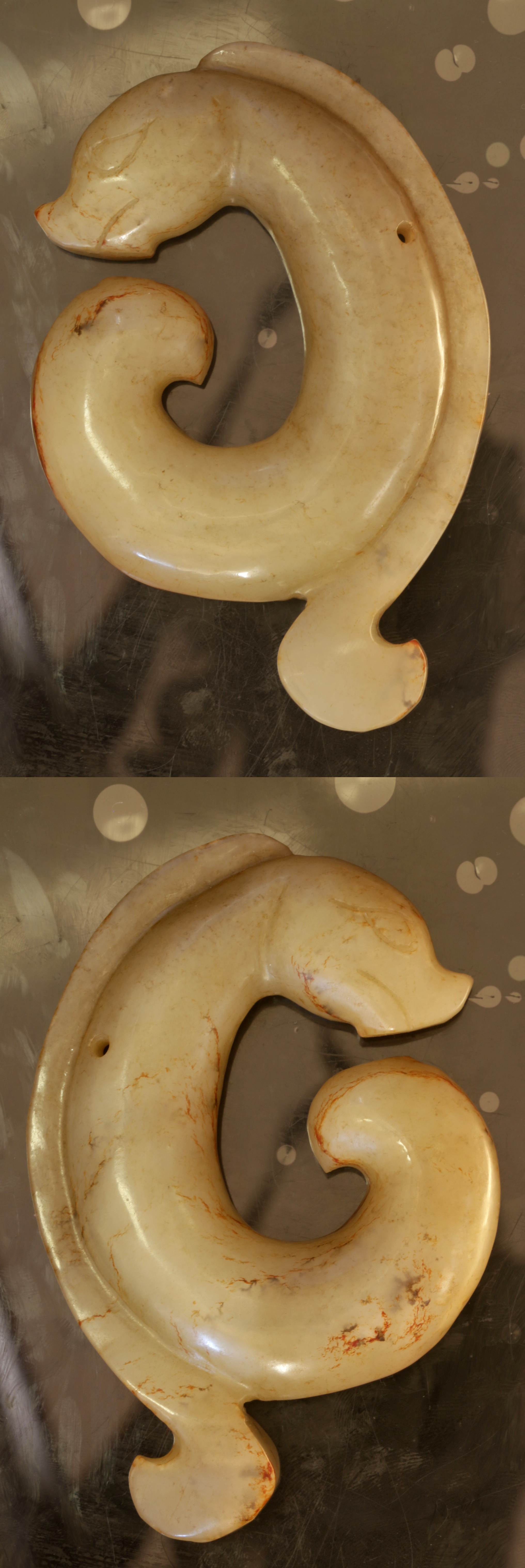 红山文化 . 白玉雕玉猪龙 一件尺寸:重197.4克,高116MM,宽78MM,