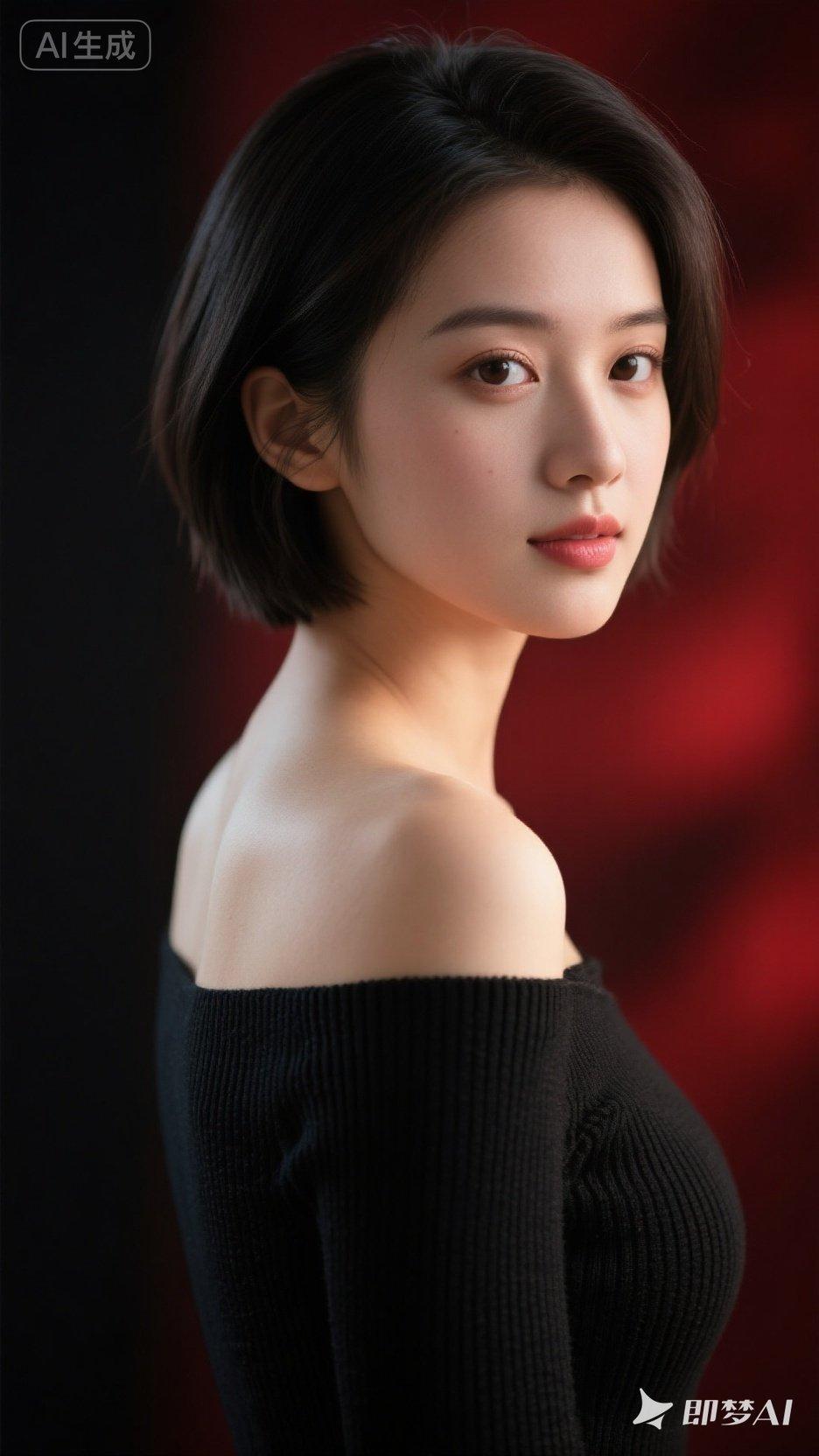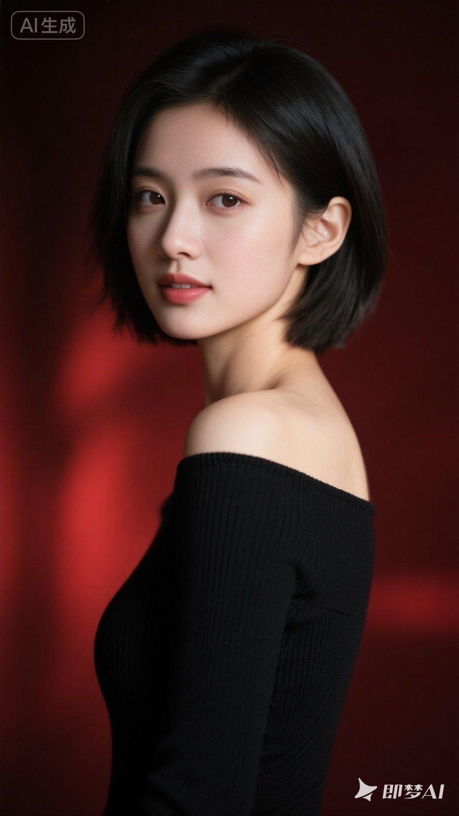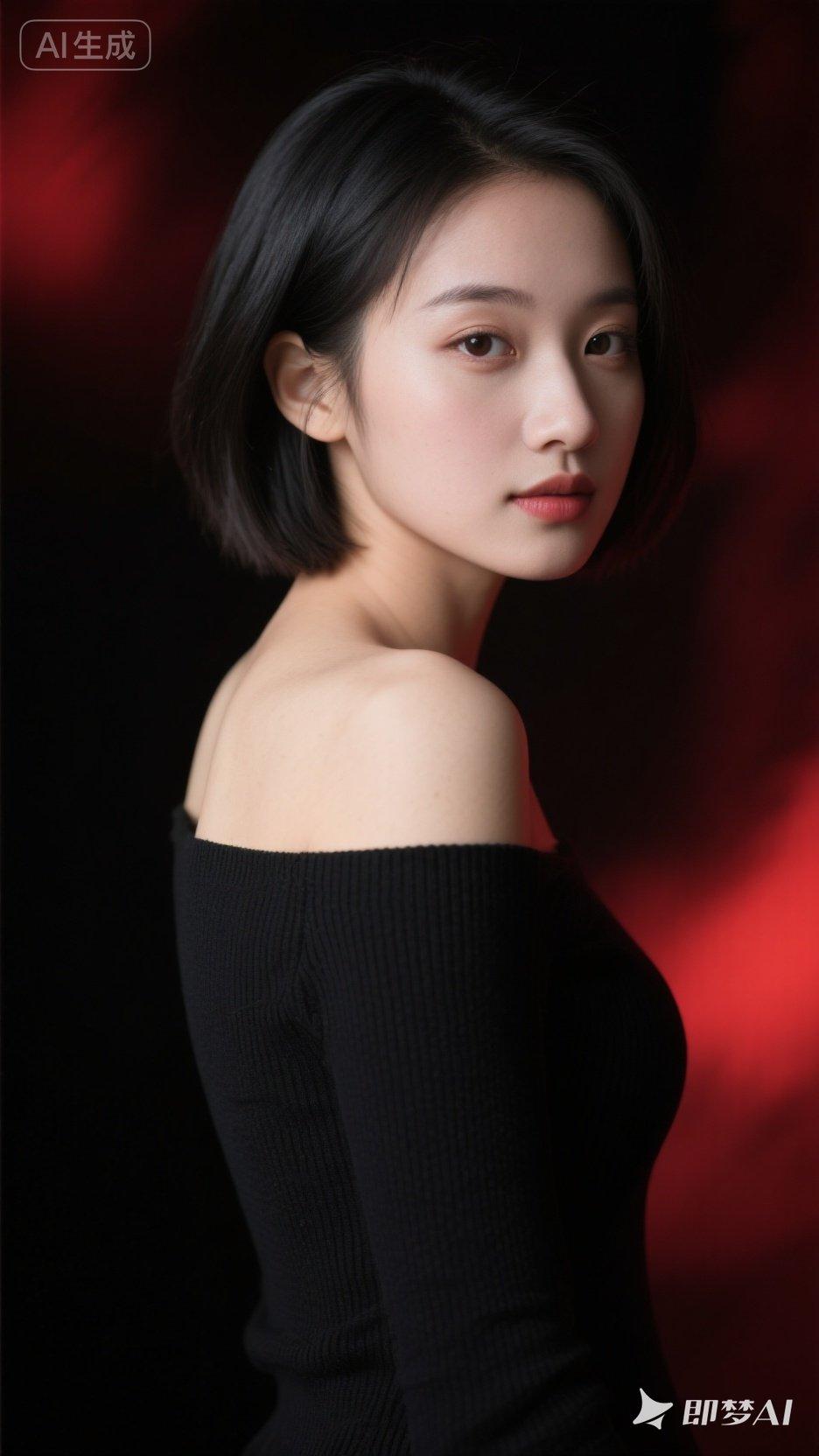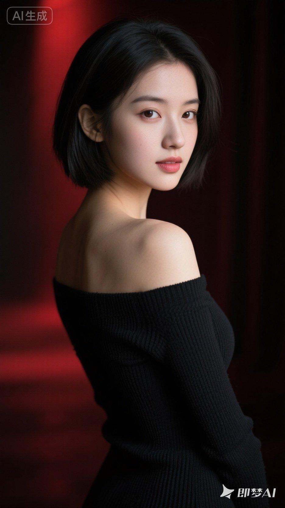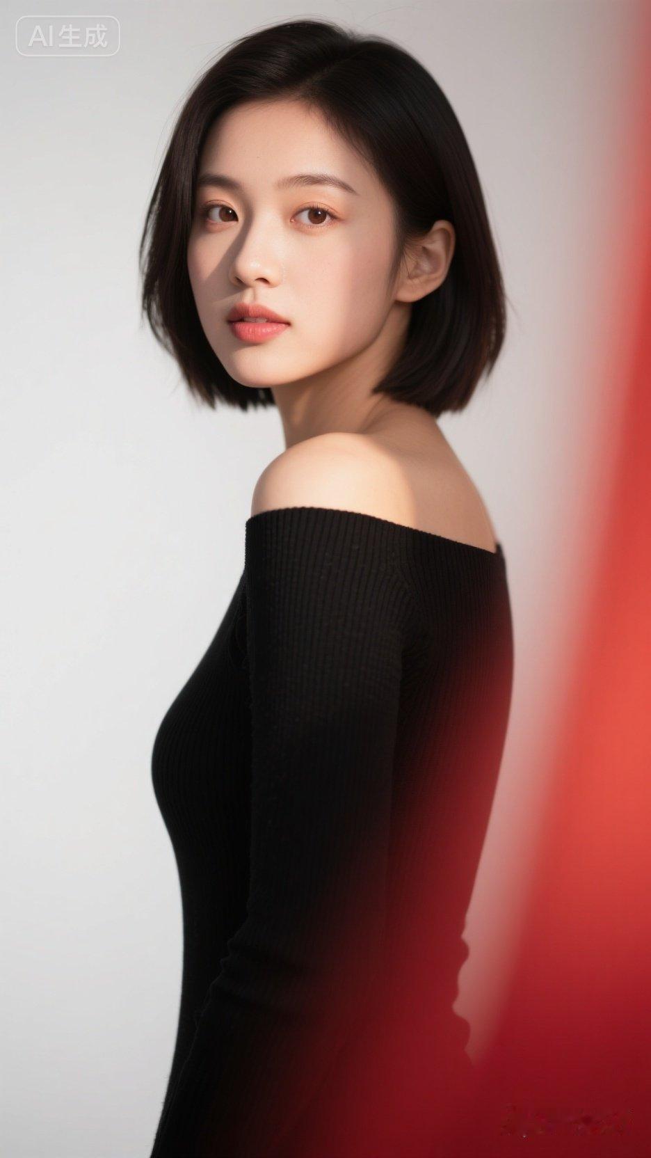 温柔甜美的气质,黑色毛衣搭配,尽显优雅魅力!💖✨