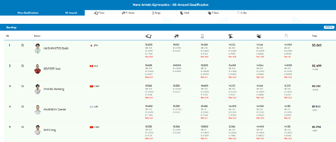 男子全能决赛将在10月22日进行。