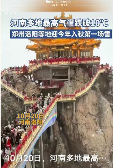 10月20日河南多地下雪 2025年10月20日,河南大地迎来了一场意料之外的“冬日惊喜”,也成为了今年秋天一道难忘的风景线。原本应是凉爽宜人的深秋时节,却突如其来地被一场银白色的冰雪覆盖,河南省会郑州的嵩山景区更是迎来今年的第一场雪。这场降雪不仅打破了人们对季节的预期,也在社交媒体上引发了热烈的讨论和广泛的关注,让无数市民在寒风中匆忙翻出了厚厚的秋裤,纷纷感叹:还没好好享受秋天,冬天竟然就提前来了。 清晨醒来,许多河南网友第一时间被朋友圈和微博上的雪景图刷屏。位于郑州的嵩山,平日里巍峨苍翠,秋日时节满山金黄,层林尽染。然而,这一天,嵩山山巅披上了一层晶莹剔透的银装,仿佛一位身穿白纱的仙子在深秋的暖阳下显得格外醒目。这场突如其来的降雪,打破了人们对秋天的固有认知,也让不少市民惊喜又困惑:还没好好感受完收获的喜悦,冬天就提前到来了。 气象部门分析指出,这次雪的到来主要源于强冷空气的影响。由于嵩山海拔较高,气温本就低于平原地区,加之近期强冷空气的持续南下,形成了降雪的有利条件。根据景区工作人员介绍,嵩山的气温一直偏低,尤其在海拔较高的山顶,温度更是骤降,为降雪提供了充足的铺垫。此次降雪不仅在嵩山出现,河南省气象台的数据显示,自19日夜间起,受强冷空气影响,全省范围内出现了大风降温天气。 不仅仅是嵩山,河南的其他一些西部山区也迎来了雪和雨夹雪的天气,焦作云台山、洛阳的老君山、龙门石窟附近的山脉,也纷纷披上了冬日的“盛装”。这些高海拔地区的浪漫雪景,让人仿佛置身于童话世界,令人心生向往。而对于广大平原地区的居民来说,这场雪带来的直观感受则是“实打实”的寒意。 数据显示,10月20日白天,河南省大部分地区的最高气温骤降至10摄氏度左右,部分地区甚至不足10摄氏度。与前几天20摄氏度左右的温暖天气相比,这一反差之大令人震惊。尤其是在西部山区,气温在凌晨时分已跌至冰点,迎来了今年入秋以来的首场霜冻。这意味着地面温度降至零下,尚未完全成熟的农作物可能受到一定影响,农业部门已纷纷发出提醒,建议农民采取相应的防护措施,确保丰收不受损失。 “我在河南,昨天还穿着短袖,今天就得披上羽绒服。”这句调侃在网络上瞬间传开。气温的断崖式下跌,让许多河南人都陷入了“找秋裤”的焦虑中。翻箱倒柜、拼命寻找冬装的场景,成为了近期网络热词。社交媒体上,网友们纷纷晒出自己“御寒”的装备:有的穿着厚重的羽绒服,有的裹着棉衣,有的还在调侃“天气变脸快得让我措手不及”。 “昨天还穿短袖,今天就穿羽绒服,秋裤在哪里,在线等,挺急的!”这类幽默调侃的帖子在朋友圈、微博、抖音等平台上刷屏。有人感叹:“气温的变化比过山车还刺激,真是‘瞬间入冬’的节奏。”也有人开玩笑说:“这天气,真是让人‘穿越’似的,感觉差点忘了现在还是秋天。” 郑州街头:四季穿搭成新风景 走在郑州市区的街头,行人的穿着也呈现出“春夏秋冬混搭”的奇特景象。有的年轻人坚持风度,仍然穿着单薄的卫衣,瑟瑟发抖;而有的市民则早早裹上了厚厚的羽绒服和棉衣,暖意十足。服装店的生意也迎来了“暖冬热潮”,厚外套和保暖内衣的销量明显上升。商家们纷纷表示,这几天的销售额比平时明显增加,暖气和厚外套都成为了抢手货。 这场突如其来的“冬天提前到来”的天气,让许多市民开始重新审视季节的变换。有的人感叹:“还没好好享受秋天的金色时光,冬天就已经提前降临。”也有人调侃:“天气的变脸速度,简直比换衣服还快,真是‘秒变’的节奏。”不过,也有不少人开始准备冬季的御寒装备,纷纷在网络上查找暖和的衣物推荐,期待在即将到来的冬天里,依然可以保持温暖。 专家指出,近年来,随着气候变化的不断加剧,极端天气事件频发,季节的界限变得模糊。本次河南提前降雪,是强冷空气带来的典型表现,也是全球气候变暖背景下,气候异常的一个缩影。气象部门提醒广大市民,要密切关注天气预报,合理安排出行和生活,尤其是农户要提前采取防冻措施,以减少损失。 河南这场“突如其来”的雪,不仅为秋天增添了一份难得的浪漫,也让人们重新感受到季节交替的无常与美丽。它像一场意外的惊喜,提醒我们:自然的变化总是在不经意间发生,只有学会顺应和迎接,才能更好地享受每一个季节的精彩。 当人们在寒风中匆忙寻找秋裤时,也不禁思考:未来的天气会变得更加难以预测吗?我们又该如何应对这一切?或许,最好的办法是保持一颗温暖的心,迎接每一次气候的“惊喜”与“挑战”。毕竟,四季轮回,风云变幻,只有懂得包容与适应,才能在变化中找到属于自己的平衡与幸福。 降温 下雪