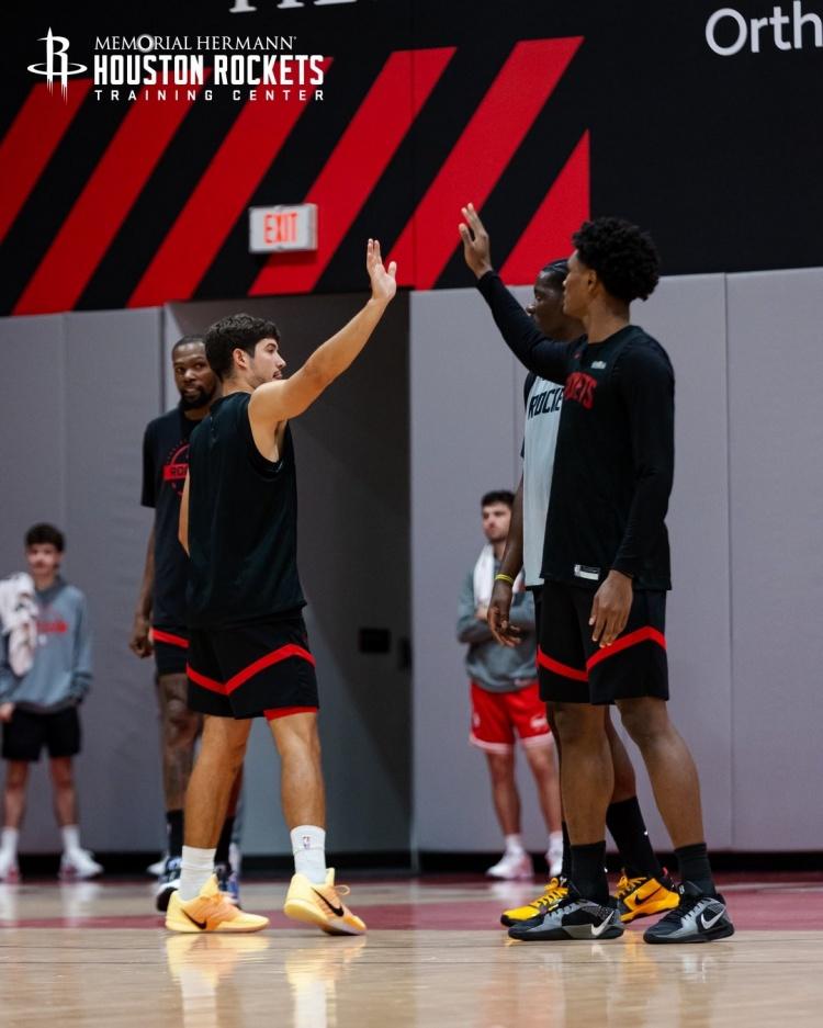 火箭厉兵秣马备战揭幕战!五高阵容联盟历史第一掀翻卫冕冠军值得期待。 日前火箭官媒晒出全队训练照,首发五虎确定,阿门2米01、杜兰特2米11、小史密斯2米11、申京2米11、亚当斯2米11,首发平均身高为2米09。为历史第一高度。 休斯敦火箭队(4胜0负)在季前赛中场均得分和进攻效率均领跑全联盟,其整体真实命中率(62.0%)高居联盟第三,是全联盟仅有的三支保持不败金身的球队之一。 明天的卫冕冠军雷霆凶多吉少难免败北呀!