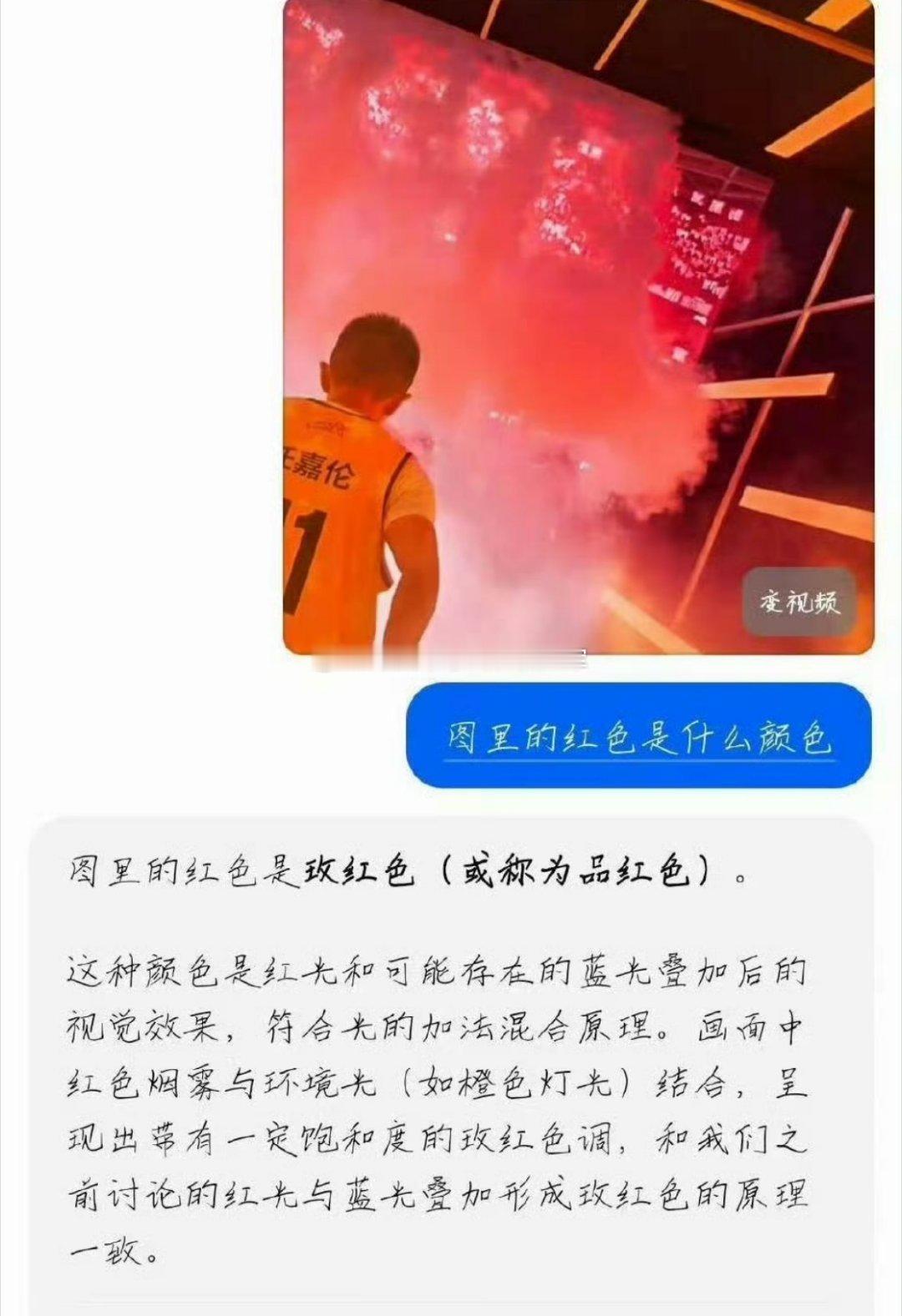 tg. 任嘉伦粉丝澄清NBA活动的p图争议,蓝光和红光叠加在一起会显示玫红色。