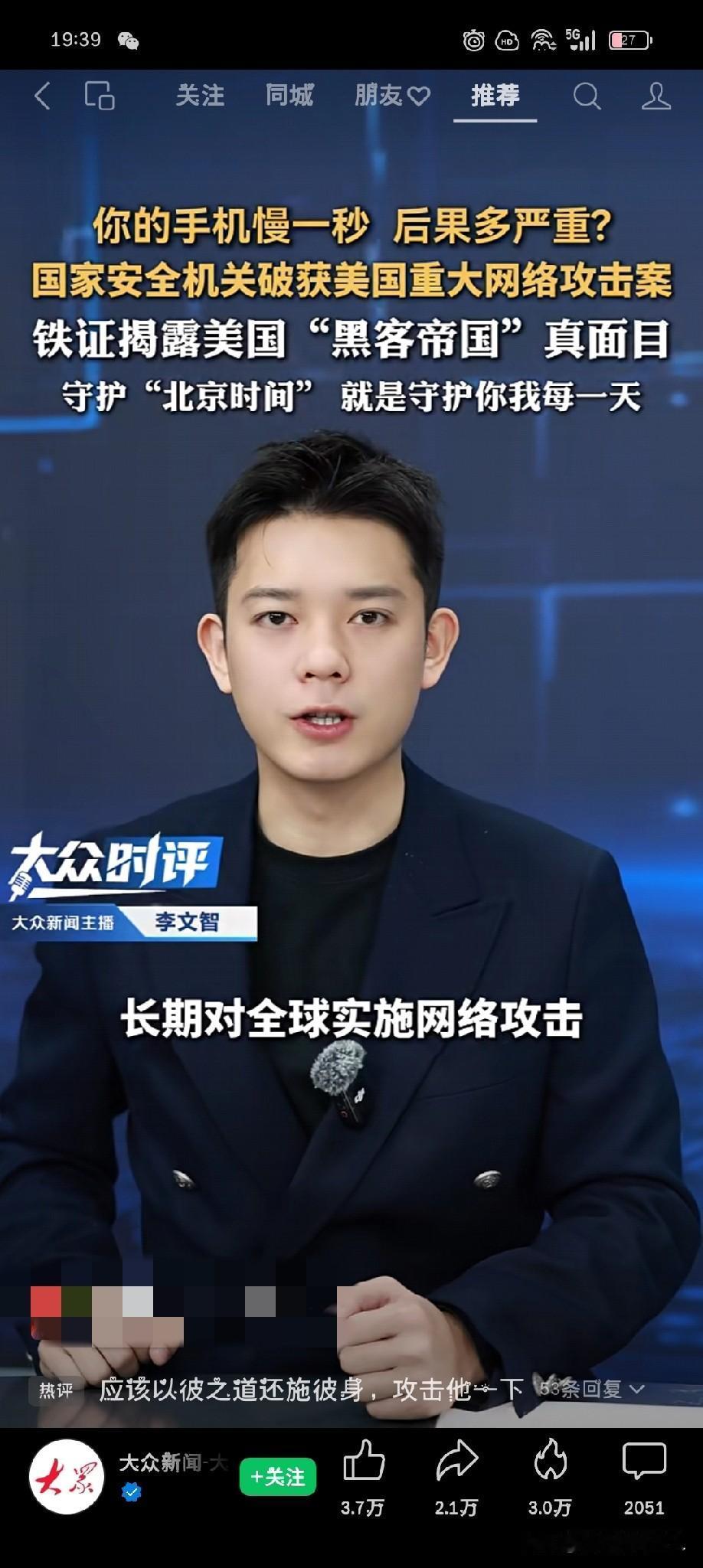 别以为手机卡顿只是小事! 国家安全机关刚破获美国重大网络攻击案,铁证撕开其“黑客帝国”的伪装——他们藏在屏幕背后,连你手机慢的1秒都可能是攻击的信号! “北京时间”不只是时钟数字,是你我每天的支付安全、通讯隐私,更是国家网络防线!美国连这点安宁都要啃,咱们怎能不警惕?你手机曾突然卡顿过吗?发现异常时会第一时间检查吗?
