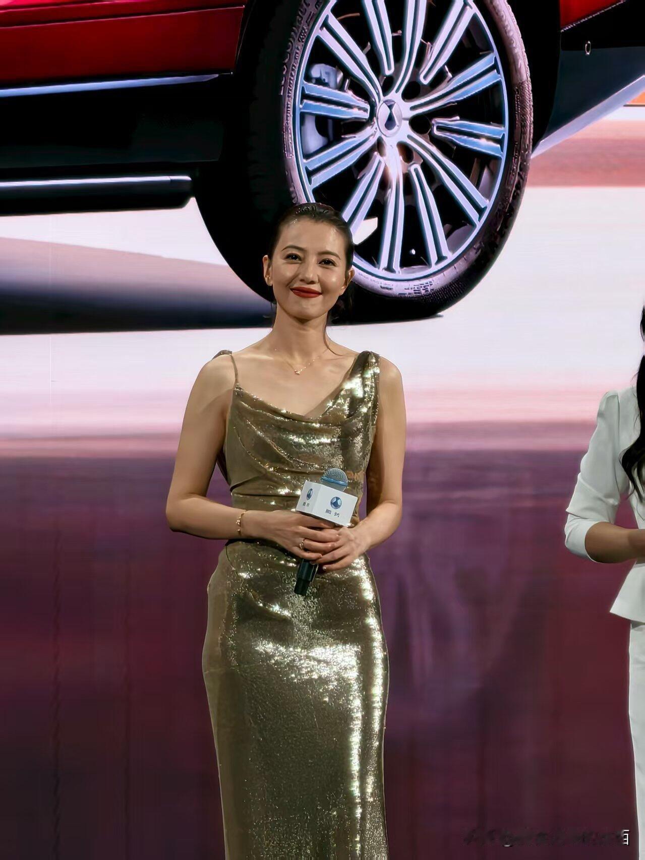 戴燕妮,优雅红唇,金色晚礼服,气质女神!