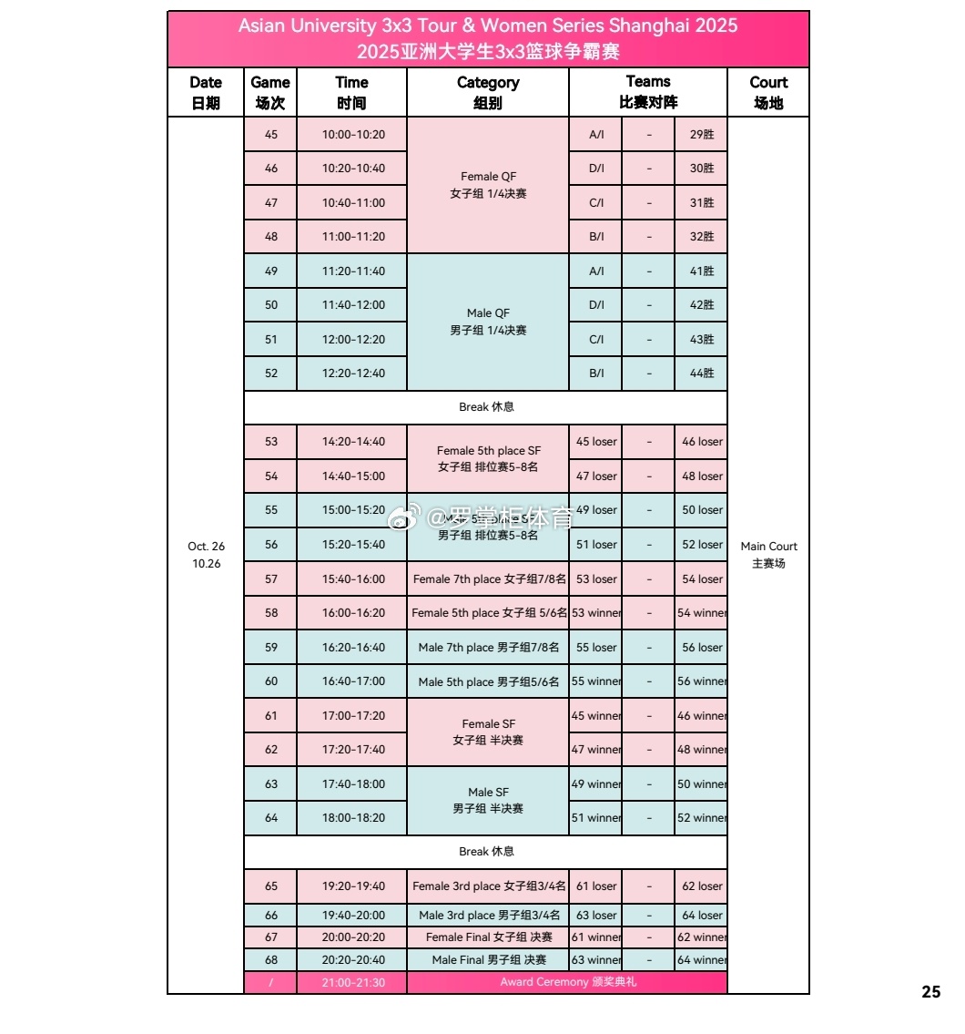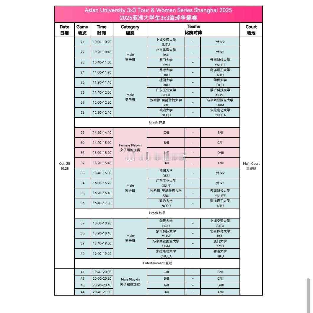 本届亚洲大学生三人篮球争霸赛落的赛程和代表球队名单,我们中国的大学生能不能拿下这