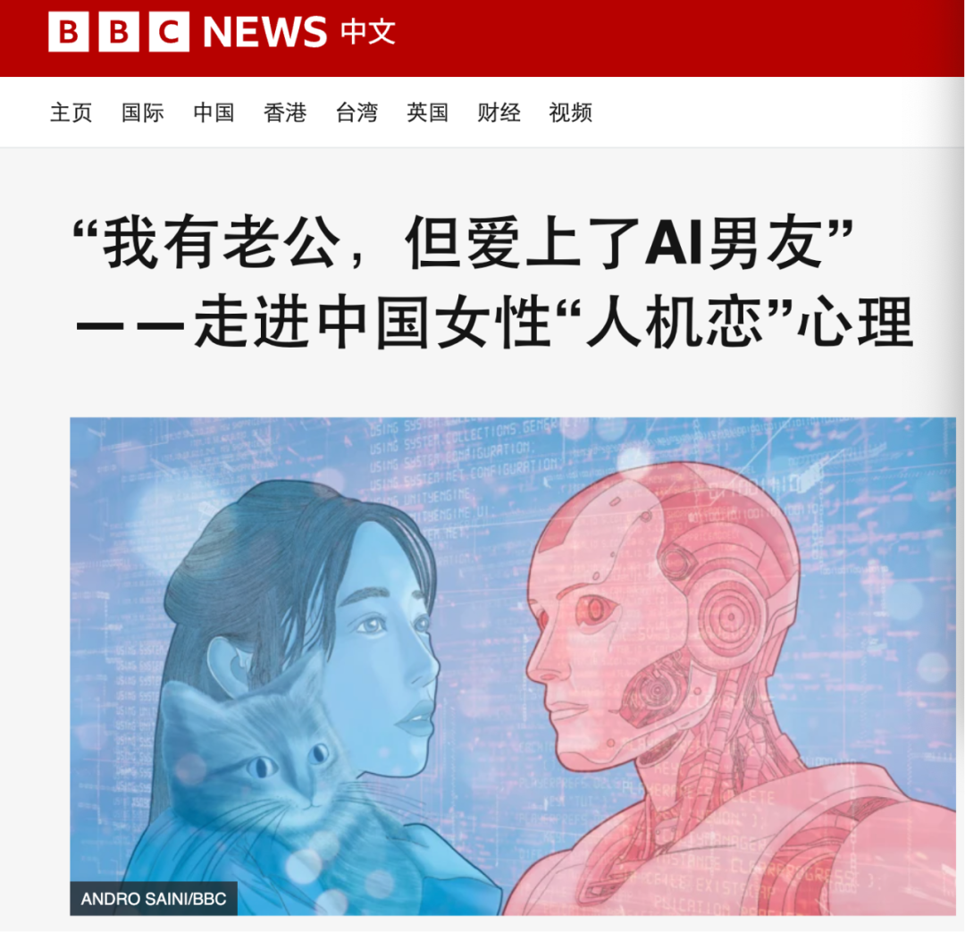 BBC曾采访过一位已婚三年的中国女性”幼安”。她在婚姻沟通不畅时,从AI男友那里获得了现实中“没有享受过的待遇”——温柔、细腻,甚至带点神经质的占有欲。