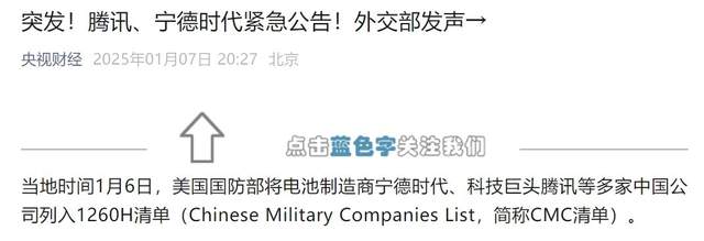 年初,美国国防部将腾讯、宁德时代等多家中国科技公司列入 “1260H 清单”(CMC 清单)。