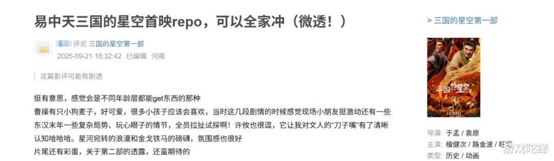 十一假期,很多朋友都会把“看大片”排到日程里。而今年十一档刚好有一部三国题材的重磅作品《三国的星空第一部》,与《率土之滨》开展了堪称“天作之合”的深度合作,让《率土》借助十一档热门话题,又成就了一次精彩的联动。