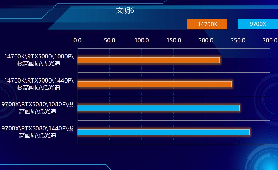 4、技术方面,9700X除了可以搭配B650主板之外,还可以搭配最新的B850和X870主板,带动RTX5080运行游戏,没有任何瓶颈。而14700K使用的还是老旧的Z790、B760主板,本着买新不买旧的原则,9700X更值得选择,可以战未来。