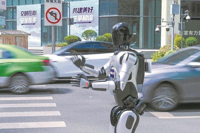 “成都造”机器人化身交通劝导员。