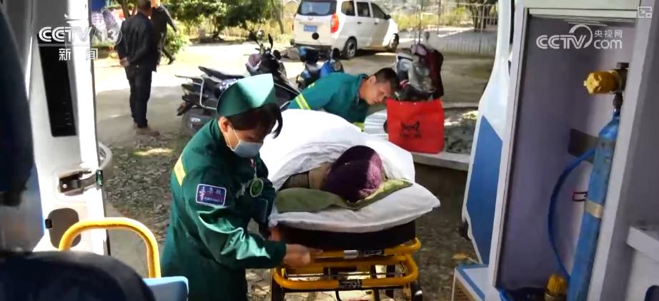 为了满足全县失能老人的照护刚需,灵山县通过由医疗机构创办养老机构,以及在养老机构内设医疗点等措施,加大护理型床位供给。同时,建立县级医养结合机构与乡镇区域养老服务中心,村级养老服务站的“绿色通道”,实现医养服务资源下沉、抵村入户。灵山县中医院就在机构内创办了养老机构,就在记者采访时,灵山县中医院接到一个农村老人的急救需求,医务人员立即赶赴村里。