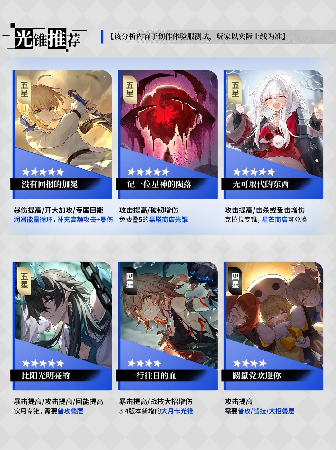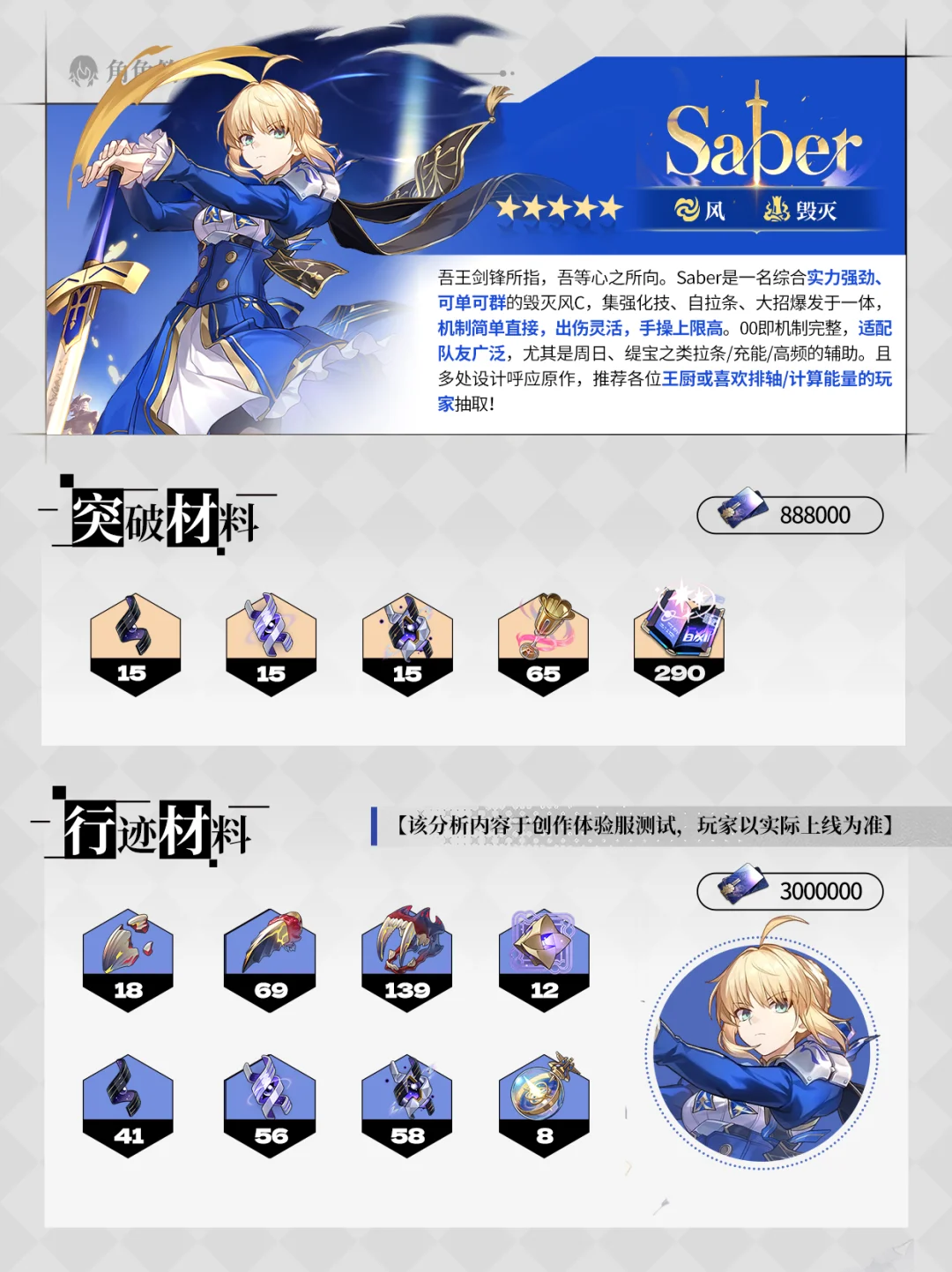 大不列颠干饭王! ▌Saber材料 | 行迹 | 光锥 | 遗器 | 配队|细节 ▌角色简介: Saber是综合实力强劲、可单可群的毁灭风C,机制简单直接、出伤灵活,手操上限高。00即机制完整,适配队友广泛,推荐各位王厨或喜欢排轴/计算能量的玩家抽取! *该内容来自创作体验服,以实际上线为准 -------- 「吾王剑锋所指,吾等心之所向。」 “你准备抽几加几Saber” [投票]