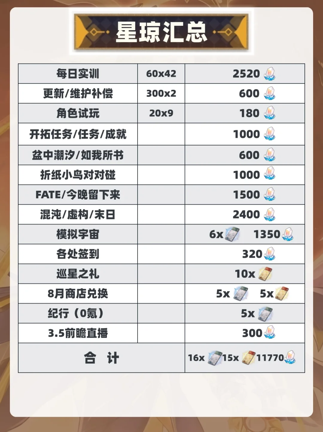 3.4版本星琼统计|200抽送光锥,看看差多少