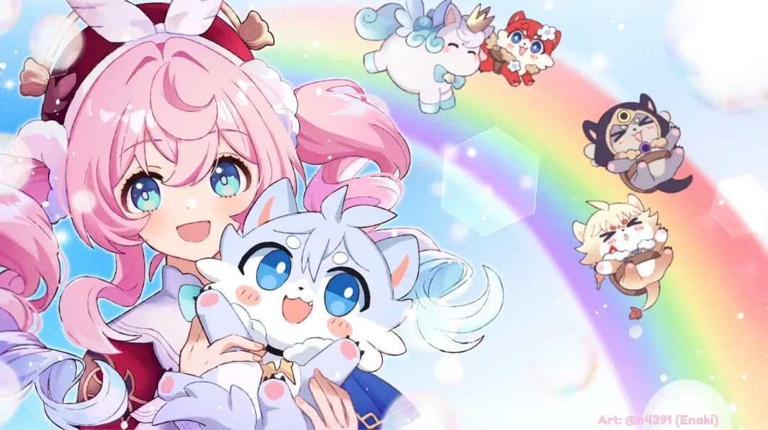 是HoYoLAB的社区活动!决战奇美拉之巅[哇R] Golden Spring(阿格莱雅) Triple Trouble(缇宝) Lion King(万敌) Misty Butterfly(遐蝶) Dromaxagoras(那刻夏) Sunshine Rainbow(风堇) Lucky Coin(赛飞儿) Perfect Snowball(白厄) Bubbles(泡泡) 感谢画师「n4391(Enaki)」、主持人「_Minsan」 [飞吻R]