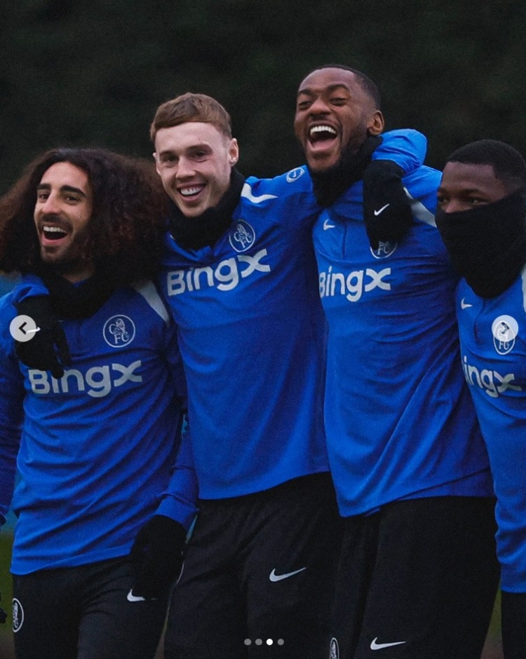 直播吧11月25日讯英超官方社媒在今日晒出切尔西的训练照,此前受伤的帕尔默已经在参加训练。