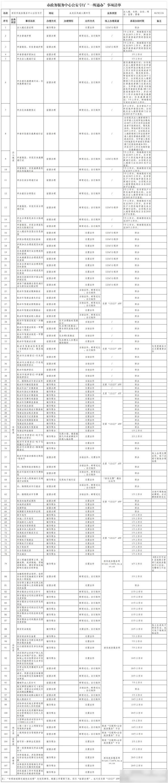 为持续提升为民服务质效,深入践行“连心警务”,方便企业群众近办、快办、好办公安业务,西安市公安局构建了“一网通办、一所通办、一次办成”的“三个一”公安政务服务体系和由1个市级公安专厅、20个区县级政务服务大厅、190个派出所“公安综合服务室”组成的“15分钟公安便民服务圈”。目前,229项公安政务服务事项中,156项已实现“一网通办”,195项已实现“一所通办”,228项已实现“一次办成”。