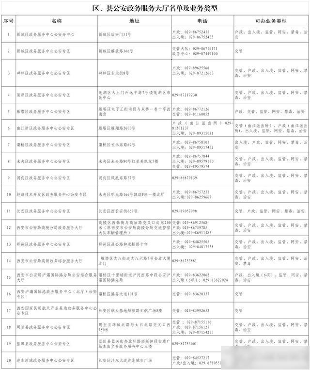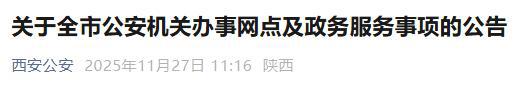 现将公安办事网点及公安政务服务事项情况公告如下: