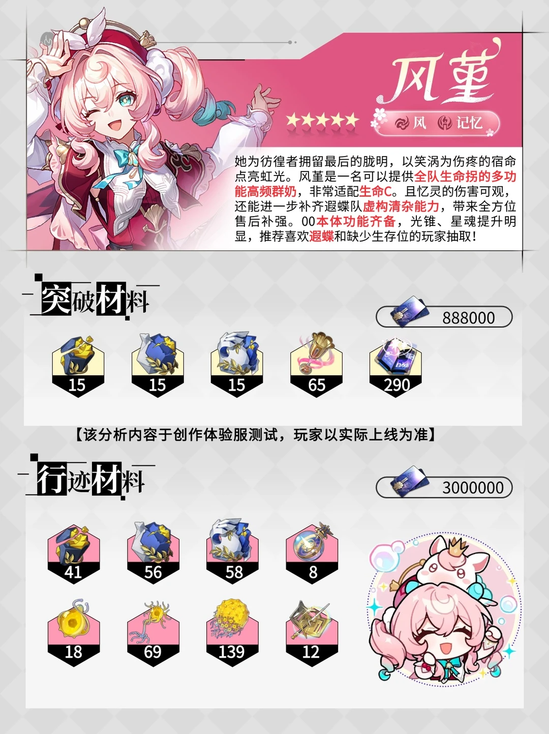 鼹鼠君来喽~ ≖‿≖✧ ▌风堇材料 | 行迹 | 光锥 | 遗器 | 配队|细节 ▌角色简介: 风堇是一名能为全队提供生命拐的高频群奶,非常适合生命体系。00本体功能齐备,推荐喜欢遐蝶和缺少生存位的玩家抽取! *该内容来自创作体验服,以实际上线为准 -------- 「愿虹光洒落,仇怨消融,黎明重回大地。」