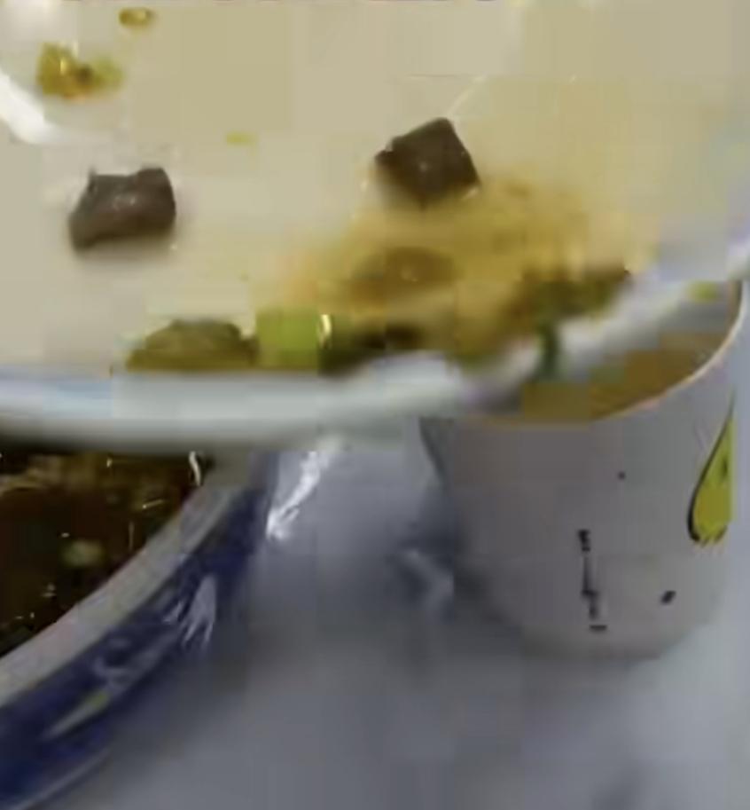 男子牛肉面里没见肉 新疆,男子15元点一份牛肉拉面,翻了半天没吃到牛肉,于是要求店员翻找,店员拿着碗找出两粒牛肉丁, 店员还表示:“我百分百放了”。 网友:这牛肉让我大开眼界