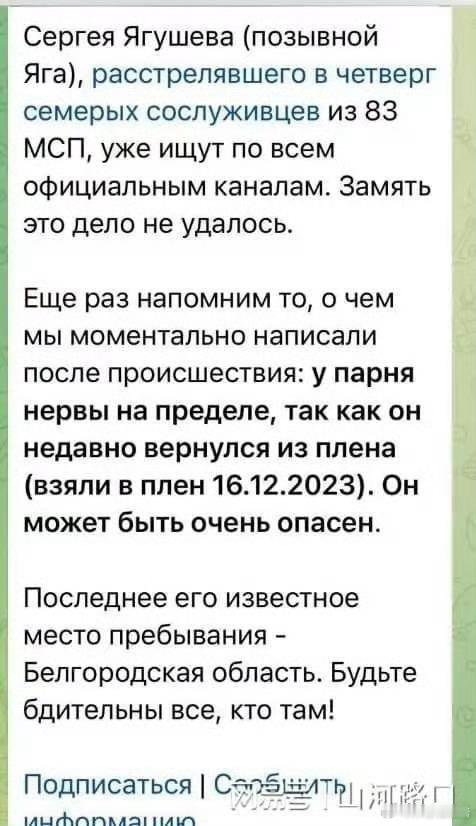 疯狂的“雅加”,应该是个好汉 11月30日,Militarnyi报道称,1名被俘俄军士兵交换后被再次送上战场,杀死7名俄军战友后潜逃……
