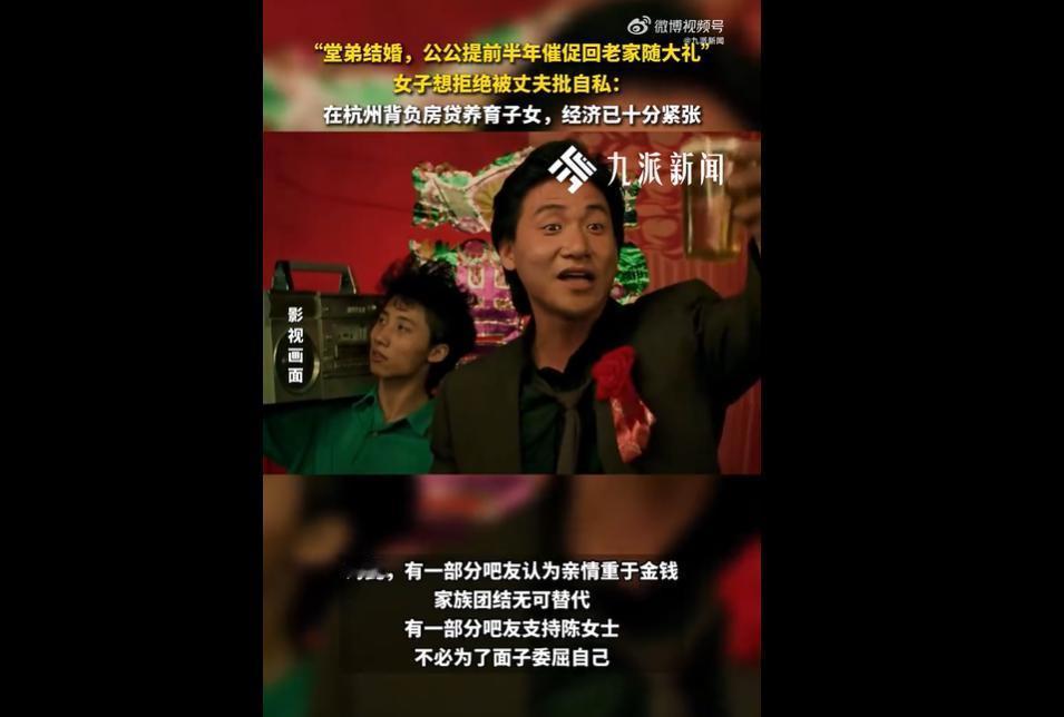 老家堂弟结婚,你回不回去? 杭州的陈女士和老公背着房贷、要养孩子,经济本来就挺紧张。 现在老公堂弟要结婚,公公早就催着他们提前三天请假回老家帮忙,还说礼金不能少,不然会被亲戚说闲话。 陈女士觉得这又费钱又费力,心里压力大,可老公觉得这是家族大事,还说她自私,网友和评论员也分成两派,有的支持去,有的觉得该量力而行。 这事儿说白了就是老辈的人情讲究,撞上了年轻人的现实难处! 陈女士夫妇在杭州过日子不容易,房贷要还、孩子要养,本来就紧巴巴的,现在还要请假长途跑回老家,又要花不少礼金,换谁都得犯愁。 亲情确实重要,但也不能不管自家的实际情况啊! 公公要是能多想想孩子们的压力,别光执着于面子和礼金多少,也不会闹得这么僵。其实,都是礼尚往来,这边还在结婚时对方交多少,你回礼多少就是,没有必要超出对方。 老公也该站在老婆的角度想想,不能一味向着老家,得平衡好小家庭和原生家庭的关系。 真正的亲情,从来不是靠花钱、跑远路撑场面撑出来的,互相体谅才最重要。实在不行,老公自己回家就好了。 有多大能力就办多大事儿,没必要为了所谓的 “体面” 让自己为难,一家人互相理解包容,日子过得舒心,才是真的有面子。