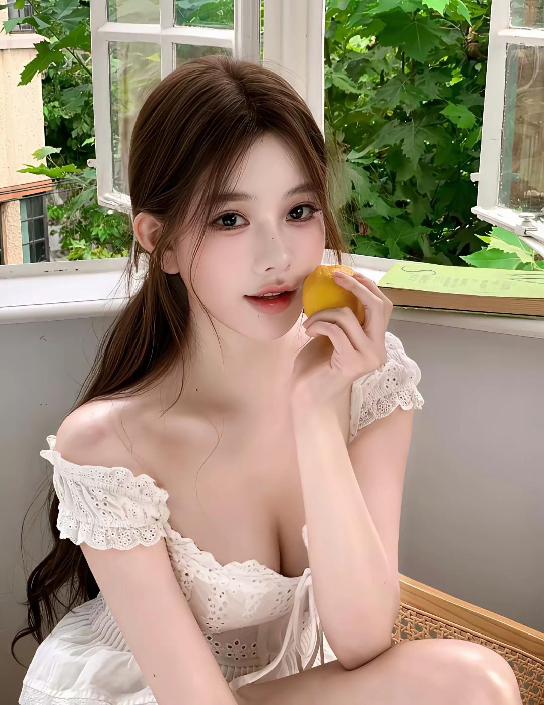 窗边阅读的温柔时光,白色蕾丝裙搭配清新柠檬🍋