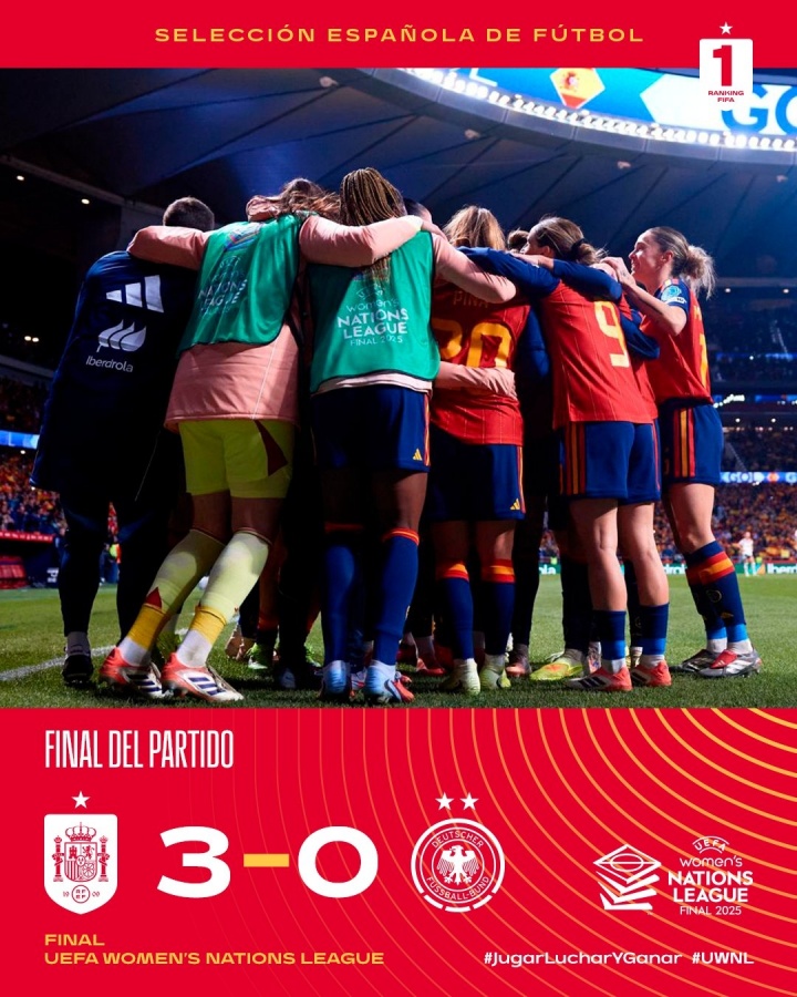 本场比赛,克劳迪娅·皮娜双响,维姬·洛佩兹破门,卡尔登泰、拉亚·亚历山德里送助攻。在女足欧国联第一届赛事中,她们2-0击败法国女足夺得冠军,如今她们成功卫冕!