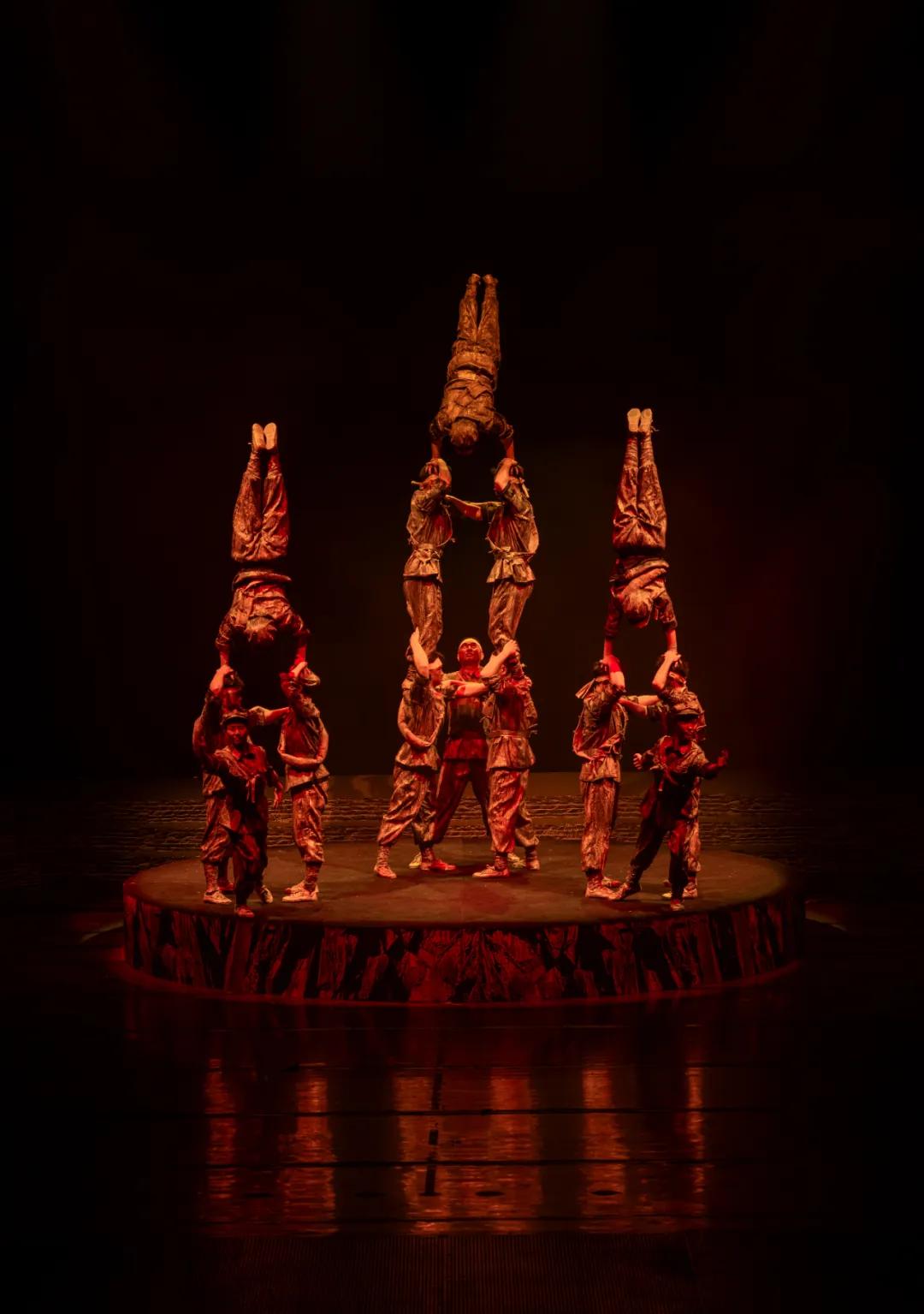 在舞台呈现上,中幡、滚灯与黔北傩戏的融合拉开了序幕,爬杆挂标语、踏歌踩高跷营造出喜迎红军的热闹场景,滑索、飞叉、腾空翻则将四渡赤水的激战诠释得淋漓尽致。每一项杂技技巧都精准服务于剧情推进,而非单纯炫技。这种艺术处理使得高难度的杂技动作成为情感表达的自然延伸,实现了技术与艺术的统一。