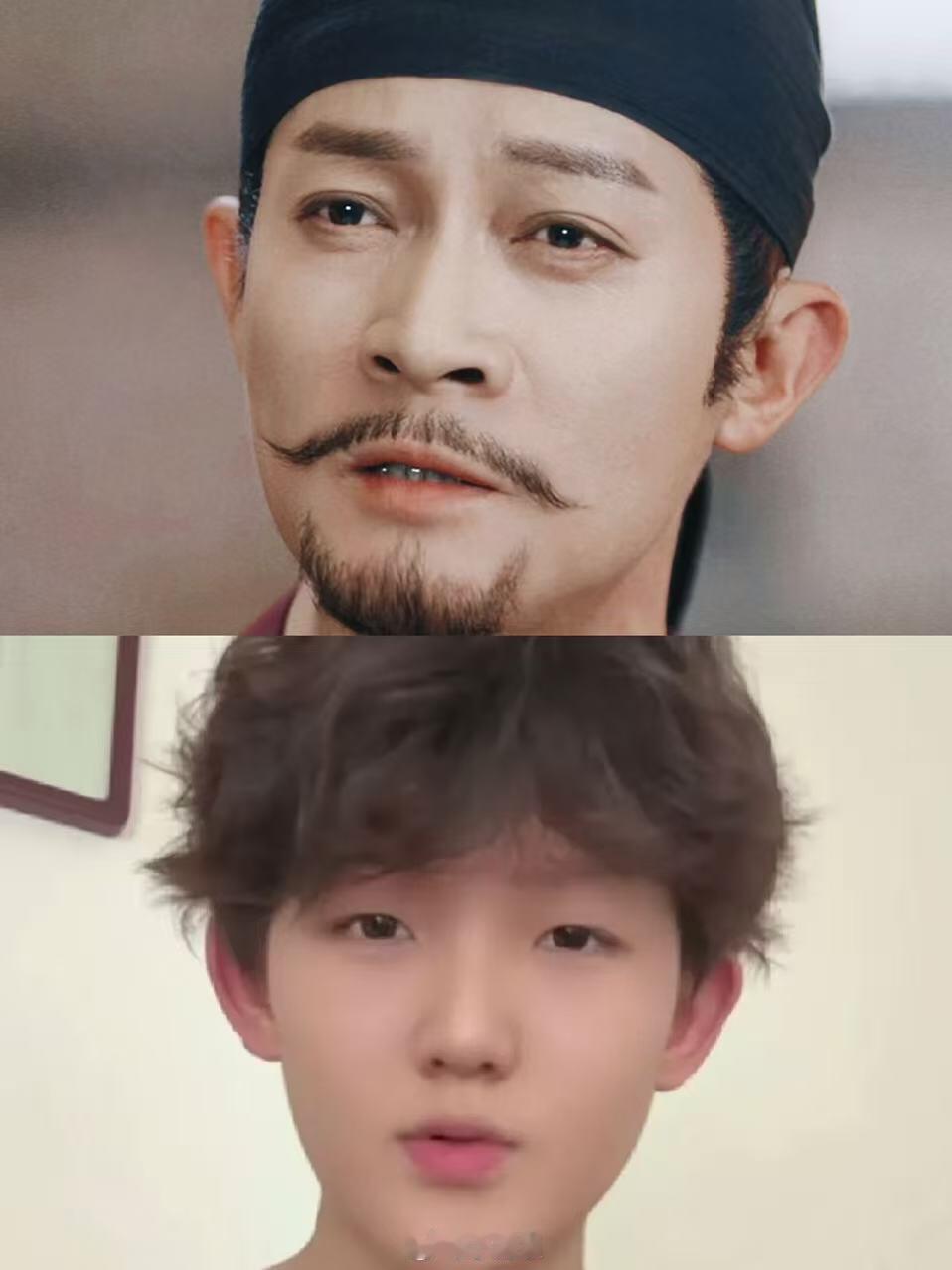 看眼睛。。。他俩是父子除了眼睛还是像爸爸的吧。。。就是没有遗传爸爸的大双,不过男孩子单也挺帅的!基因真的是门学问,男孩是不是会像妈妈多一些杨志刚‖唐朝诡事录之长安‖