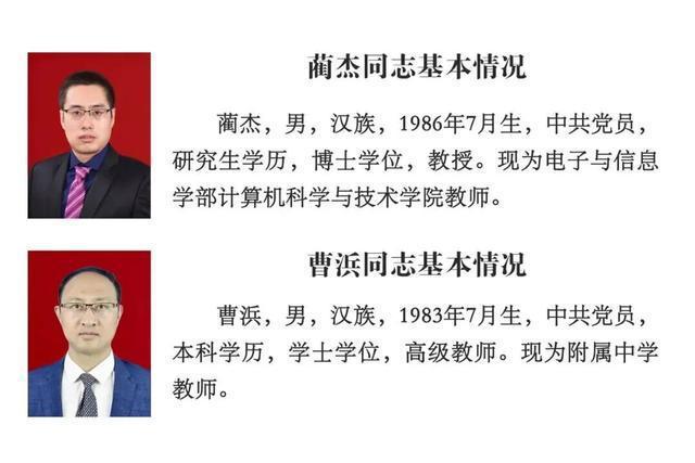 刘庆新向与会人员介绍了新任干部的基本情况,并代表大学党委宣读任职决定:任命蔺杰、曹浜两位同志为附属中学副校长。