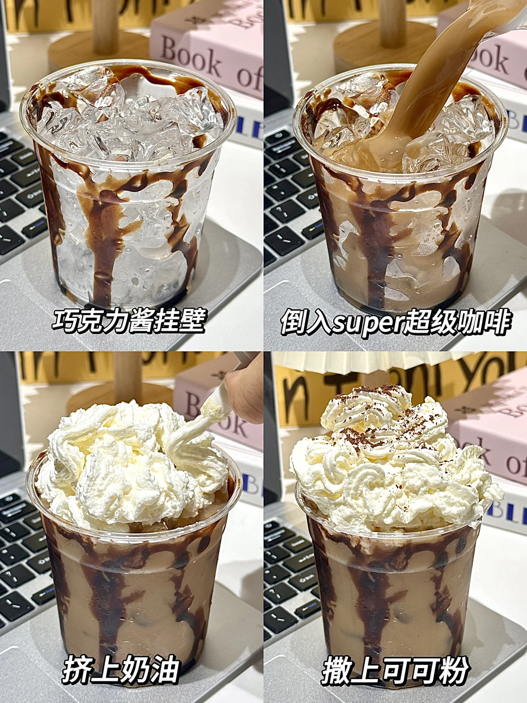 有条件的还可以自己加点巧克力酱、奶油和可可粉diy一下,一点也不输外面咖啡店!