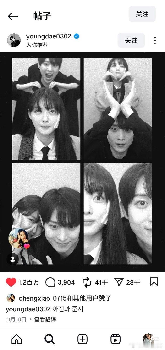 程潇点赞金裕贞ins刷到程潇点赞金裕贞 ins,瞬间激动到尖叫,双厨狂喜的快乐谁懂!潇潇也是《亲爱的 X》自来水吧~程潇点赞亲爱的x主演ins程潇点赞金裕贞
