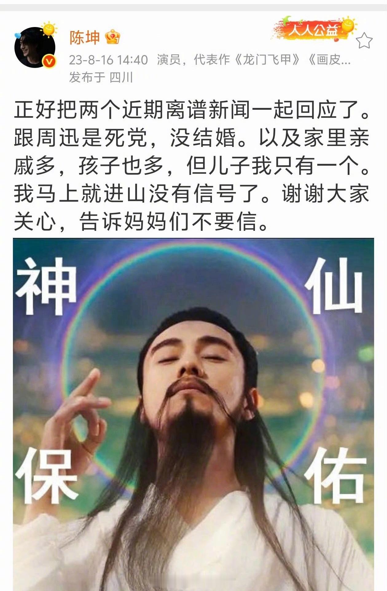 这才是,今天娱乐圈最大的瓜。12做4日,49岁的陈坤,冲上热搜,这一次,不是