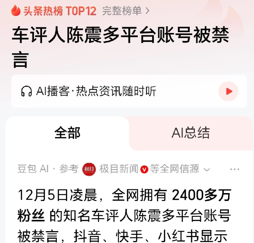 可惜了!各大平台几手是同一时间禁言了陈震的所有网络平台帐号。