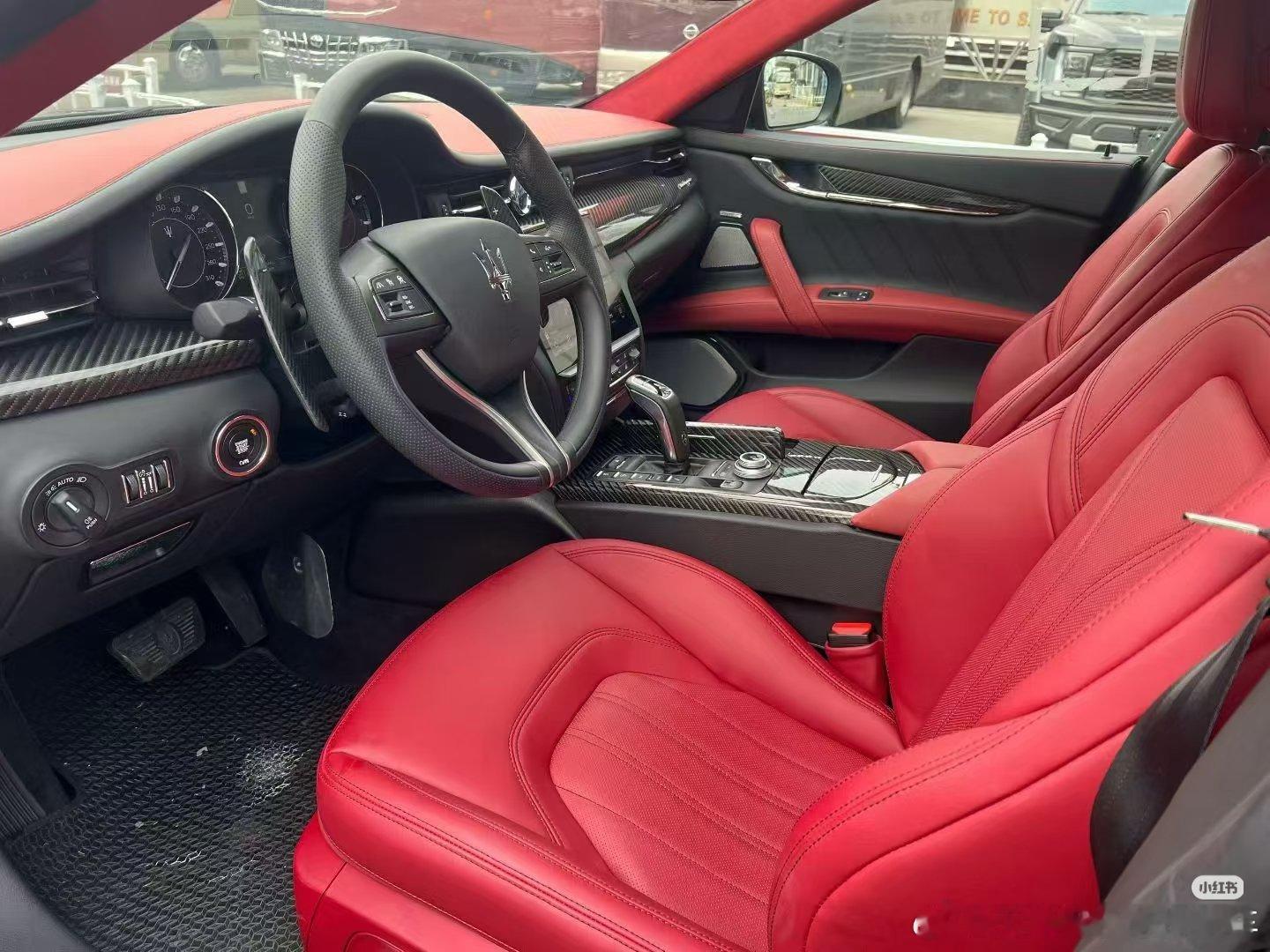 降价啦!💯 125.8万!比4S便宜100万新款玛莎拉蒂 总裁Q4摩德纳 430匹马力全国唯一一家平行进口玛莎拉蒂总裁,430马力四驱3C证书,高性能四驱超豪华轿车,阿克曼角转向技术 高速过弯车辆不甩尾!金刚黑云母漆 - Nero Ribelle /黑红双色色全真皮内饰男孩的梦想座驾 男人的梦想 性能车 天津港小陈探豪车 玛莎拉蒂总裁配置:1️⃣21英寸Atlante锻造深灰合金轮辋2️⃣红色卡钳3️⃣黑色全真皮内饰配红色缝线4️⃣高光立体编织碳纤维内饰:•碳纤维中控面板及内饰•碳纤维门槛饰条•碳纤维换挡拨片•4坐碳纤维5⃣高级驾驶辅助套件:•ACC 自适应定速巡航,带有自动启停功能、车道保持辅助、主动盲点辅助功能•前碰撞预警,带先进制动辅助系统和自动紧急刹车•盲点警示及倒车横向碰撞警示功能•360°全景泊车影像系统•智能车速辅助系统 (限速器和交通标志识别)•自动紧急刹车 (行人识别功能)•高级主动式驾驶辅助系统6⃣前座椅通风功能,电动油门、刹车踏板调节打孔高端皮革全真皮内饰( 扩展覆盖范围),真皮运动方向盘-带加热功能,7⃣豪华行政 4 坐、后排舒适座椅、后排舒适靠背角度调节、后排舒适座椅前后调节,后侧遮阳帘。后排座椅通风加热,独立四区舒适空调8⃣远程遥控启动功能9⃣无线充电器1⃣ 0⃣Nerissimo 曜黑碳纤维套件:•黑色车窗门框饰条•高亮黑前格栅•碳纤维后视镜罩•碳纤维门把手•熏黑 LED 前大灯•黑色排气管•黑色外部饰件(后备箱饰件、格栅上叶片、侧通风口、徽标)•熏黑后尾灯•碳纤维 B 柱外饰件•碳纤维的前唇1⃣ 1⃣电动自吸门1️⃣ 2️⃣宝华韦健顶级音响汽车我与汽车的日常天津港小陈探豪车天津小陈探豪车大v聊车