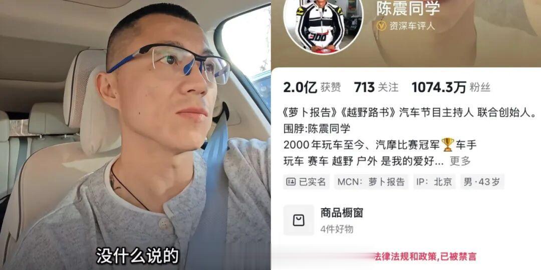 12月5日,资深车评人陈震因偷税被查处,追缴并罚共计247.48万元。消息一出,舆论场内各种声音沸腾,皆因在该案曝光前,陈震曾因被全网禁言作出一番煞有介事的反省。