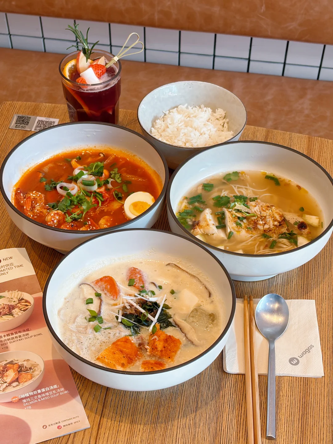 谁谁谁,谁还没吃上啊![皱眉R] 3款都hoho吃~ wagas 热量测评 热量 wagas热量 wagas新品 热量测评 Wagas 白人饭 三大营养素 热量 慢炖三文鱼味噌豆乳汤碗 香煎芝麻虾仁韩式泡菜汤碗 清香柚子鸡汤细面